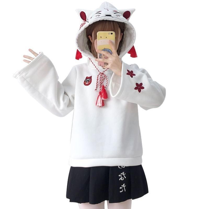 La sudadera con capucha está hecha de algodón de alta calidad, suave y cómodo, y está disponible en blanco y negro. Esta sudadera kitsune es perfecta para cualquier ocasión, ya sea para dar un paseo por el parque, quedar con amigos o relajarse en casa. Tiene un corte holgado, así que puedes usarla fácilmente sobre una camiseta o sola.