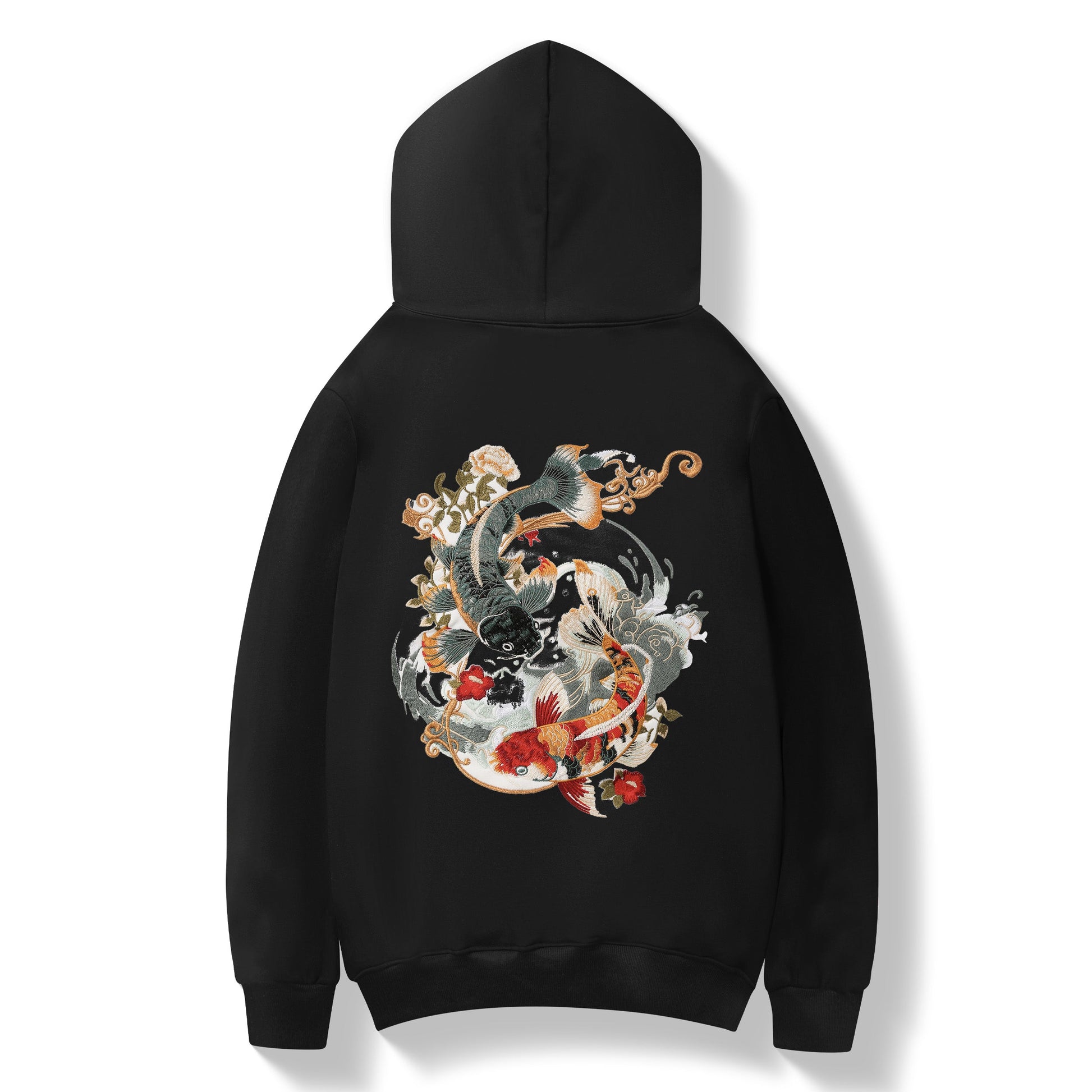 KH9008 Sudadera con capucha con bordado YinYang Koi