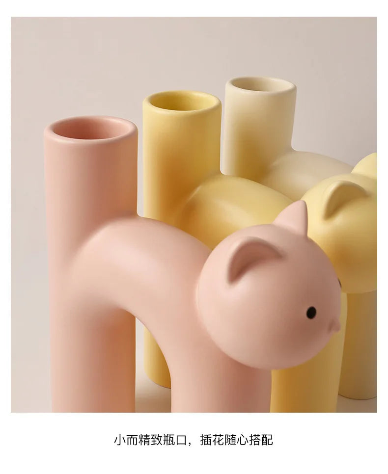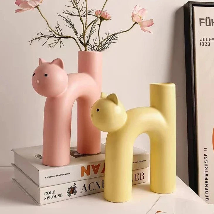 Jarrones de cerámica con forma de gato en tonos pastel