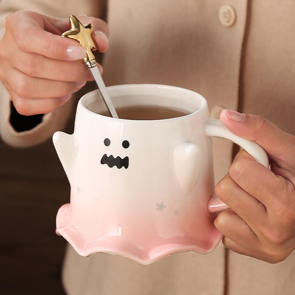Elaborada con atención al detalle, cada taza kawaii presenta un adorable diseño de fantasma sobre un fondo pastel, lo que hace que tus sorbos sean aún más agradables.