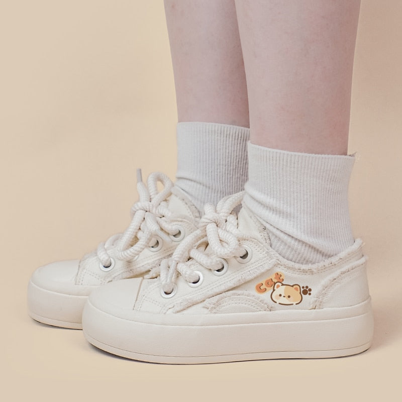 Toile blanche classique : Ces baskets sont confectionnées dans une toile blanche classique qui s'accorde avec toutes les tenues décontractées. Que vous optiez pour une tenue habillée ou un look décontracté, ces baskets kawaii sont le choix idéal.