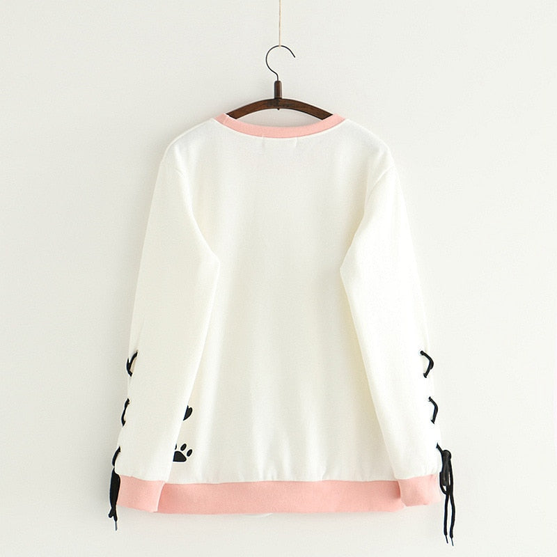Restez au chaud et mignon avec notre sweat-shirt décontracté à motif chat, disponible en rose ou en blanc. Ses adorables oreilles et pattes de chat vous donneront l'impression d'avoir votre propre compagnon félin partout avec vous. Fabriqué dans des matières douces et confortables, ce sweat-shirt est parfait pour se détendre ou pour une journée décontractée. Affichez votre amour des chats avec style grâce à ce sweat kawaii.