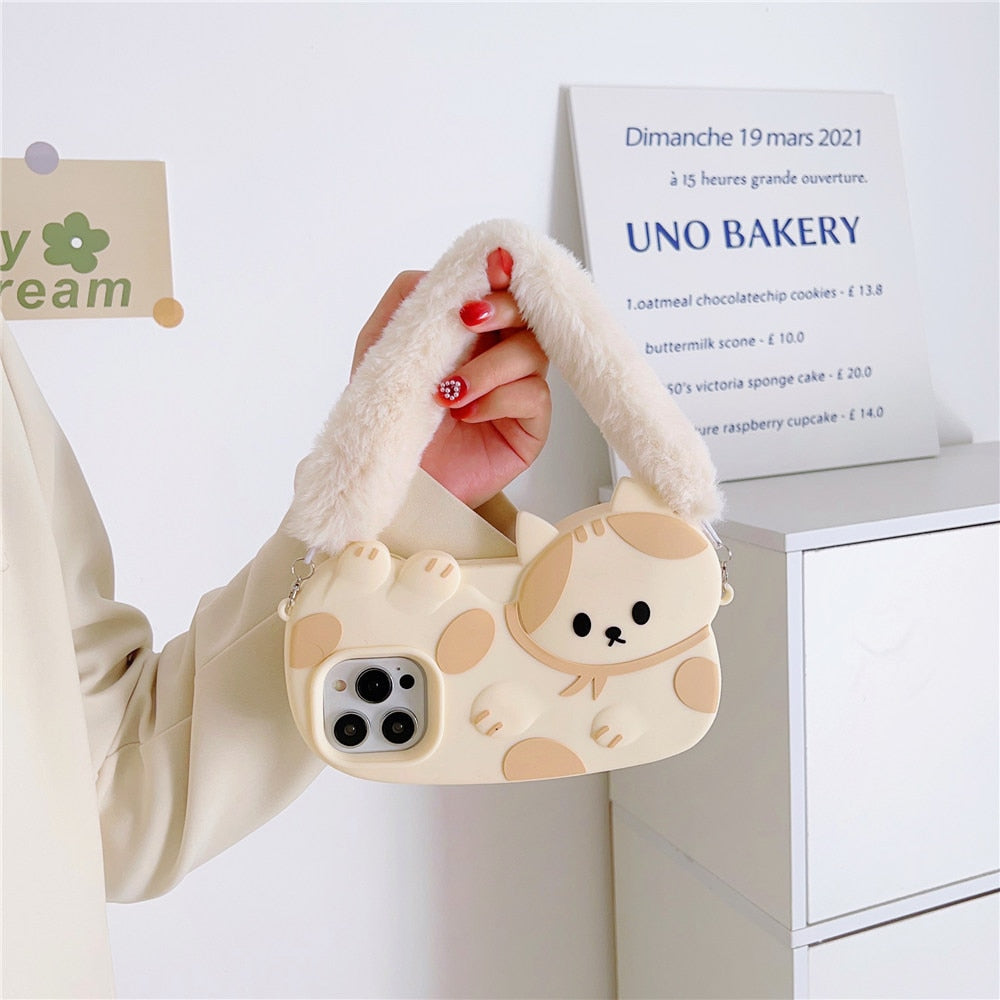Cette coque iPhone chat avec dragonne pelucheuse est le cadeau idéal pour tous ceux qui aiment les chats et les accessoires mignons. Protégez votre iPhone avec style et faites sensation avec notre coque iPhone chat kawaii avec dragonne pelucheuse !