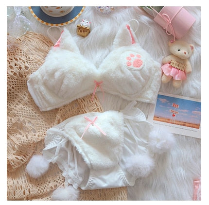 Découvrez l'ensemble de sous-vêtements en peluche Patte de chat : le complément kawaii ultime à votre collection de lingerie ! Cet adorable ensemble comprend un soutien-gorge avec d'adorables oreilles de chat et un imprimé patte, ainsi qu'une culotte en peluche assortie. Les matières de haute qualité garantissent confort et durabilité, tandis que le design ludique ajoute une touche de fantaisie à votre lingerie. Envie d'ajouter une touche de fantaisie à votre quotidien ? L'ensemble de sous-vêtements en peluche Patte de chat est fait pour vous. Alors pourquoi se contenter d'une lingerie ennuyeuse quand vous pouvez libérer le chat qui sommeille en vous avec cet ensemble mignon et douillet ? Préparez-vous à ronronner de plaisir avec l'ensemble de sous-vêtements en peluche Patte de chat !