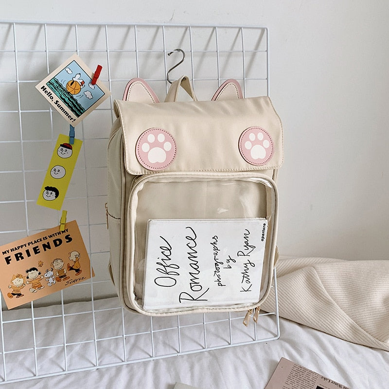 Découvrez notre sac à dos chat à poche transparente, l'alliance parfaite du style kawaii et de la fonctionnalité ! Si vous êtes un amoureux des chats et que vous appréciez les accessoires adorables, ce sac à dos kawaii est fait pour vous. Avec ses adorables oreilles de chat et sa poche avant transparente, c'est un choix tendance pour tous les amoureux des chats.