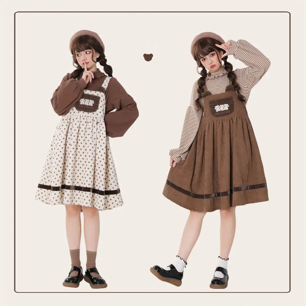 Velours côtelé douillet : Confectionnée en velours côtelé doux et résistant, notre robe salopette kawaii allie confort et style. Elle est idéale pour les transitions de saison avec une touche de chaleur.
