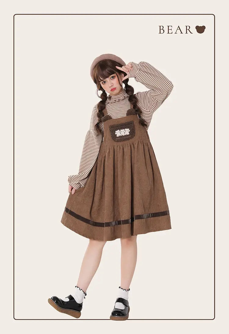 Que vous vous promeniez en ville, assistiez à un événement mignon ou adoptiez simplement le style kawaii, notre robe salopette ourson en velours côtelé vous garantit une mode aussi charmante que confortable. Enfilez cet adorable ensemble et laissez l'ourson qui sommeille en vous s'exprimer !