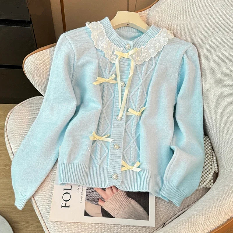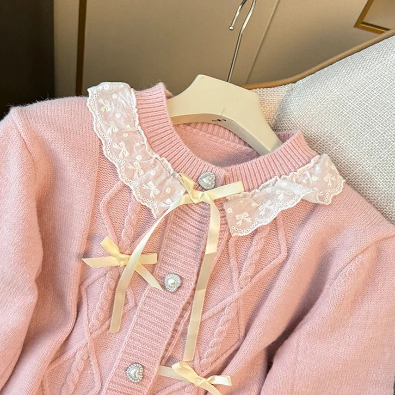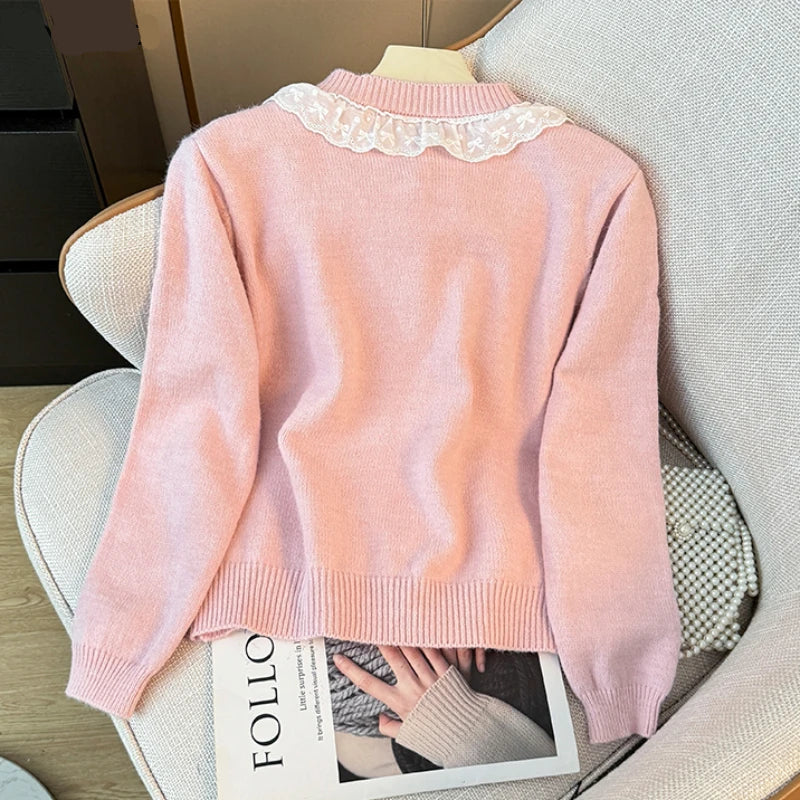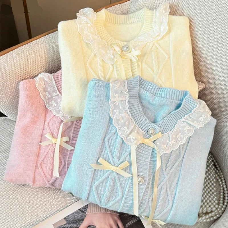 Ajoutez une touche ludique à votre garde-robe avec nos cardigans pastel à col en dentelle ! Disponibles en rose, bleu et jaune, ces cardigans kawaii sont le complément idéal de votre garde-robe printanière kawaii. Avec leur délicat col en dentelle et leur fermeture boutonnée facile à enfiler, vous serez à la fois mignonne et confortable.