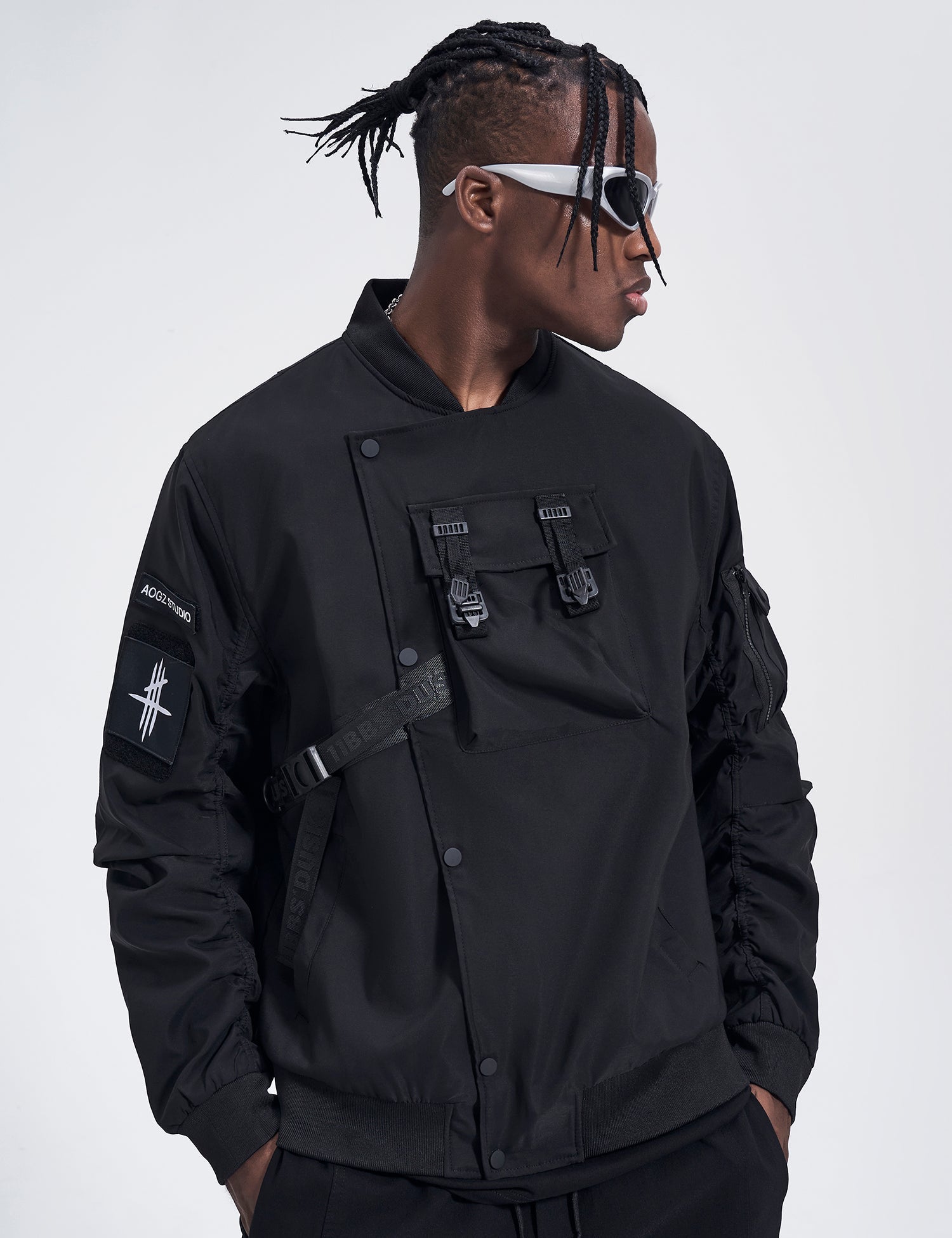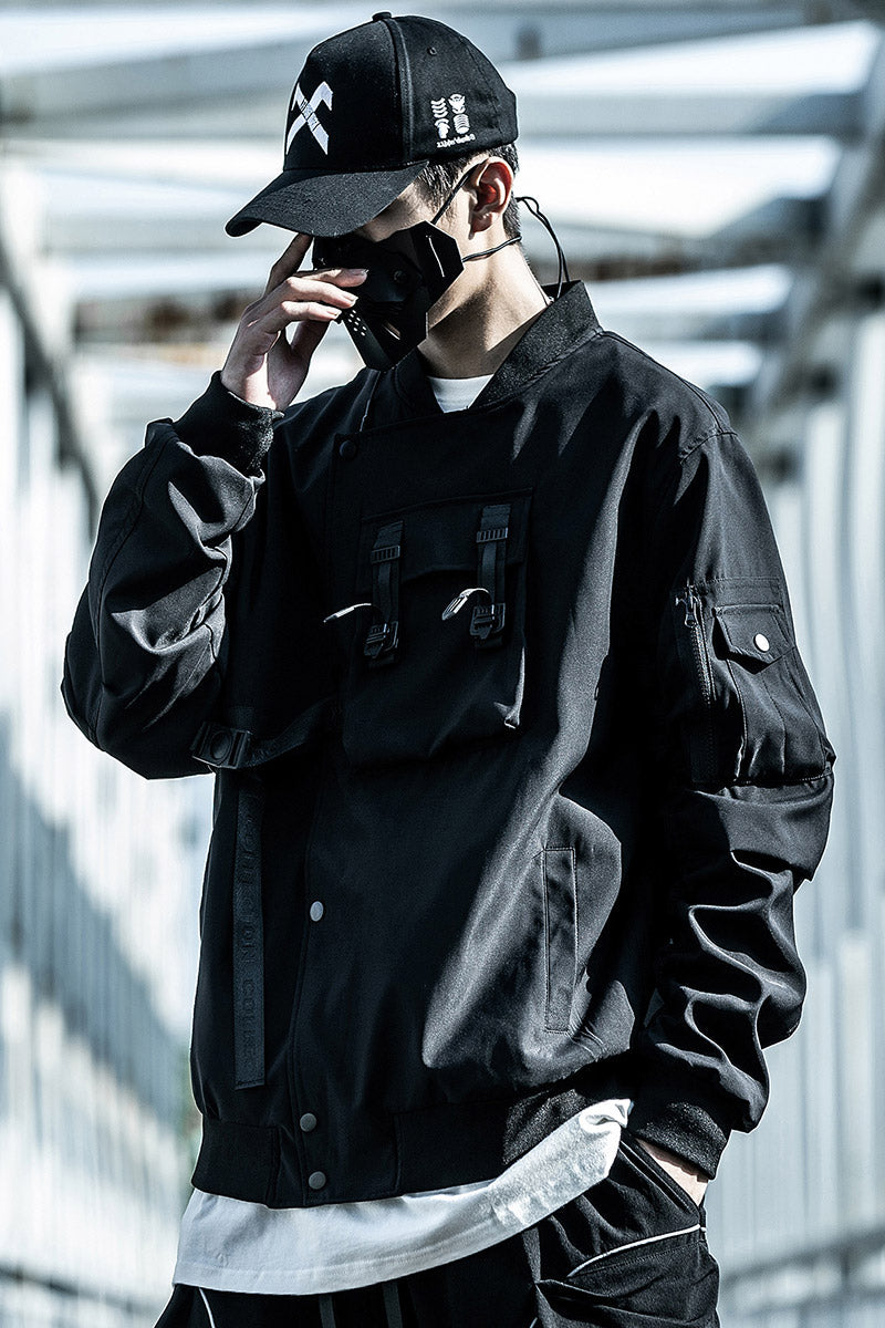 - Veste noire décontractée conçue pour tous les types d'occasions et conçue pour le sens le plus moderne du techwear, du streetwear et de la mode urbaine