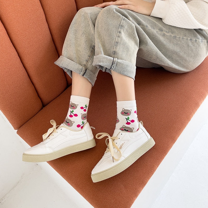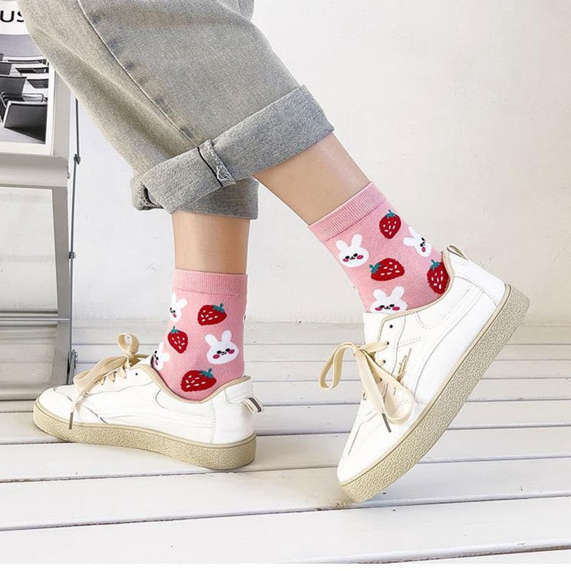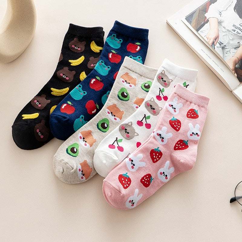 Ajoutez une touche de fantaisie à votre tenue avec nos chaussettes Kawaii Fruits et Animaux ! Ces adorables chaussettes arborent un motif de fruits et d'animaux variés, disponible en cinq styles amusants : lapins et fraises, shiba inu et avocats, ours et bananes, chats et cerises, ou givre et pommes. Fabriquées dans des matières respirantes de haute qualité, elles garantissent confort et fraîcheur à vos pieds tout au long de la journée. Leur design kawaii ludique ajoute une touche de fantaisie à votre tenue. Parfaites avec des baskets ou des sandales, elles sont un accessoire polyvalent en toute occasion. Alors, pourquoi se contenter de chaussettes banales quand on peut avoir une paire amusante et charmante ? Commandez vos chaussettes Kawaii Fruits et Animaux dès aujourd'hui et profitez du soutien amusant et adorable de ces charmants accessoires !