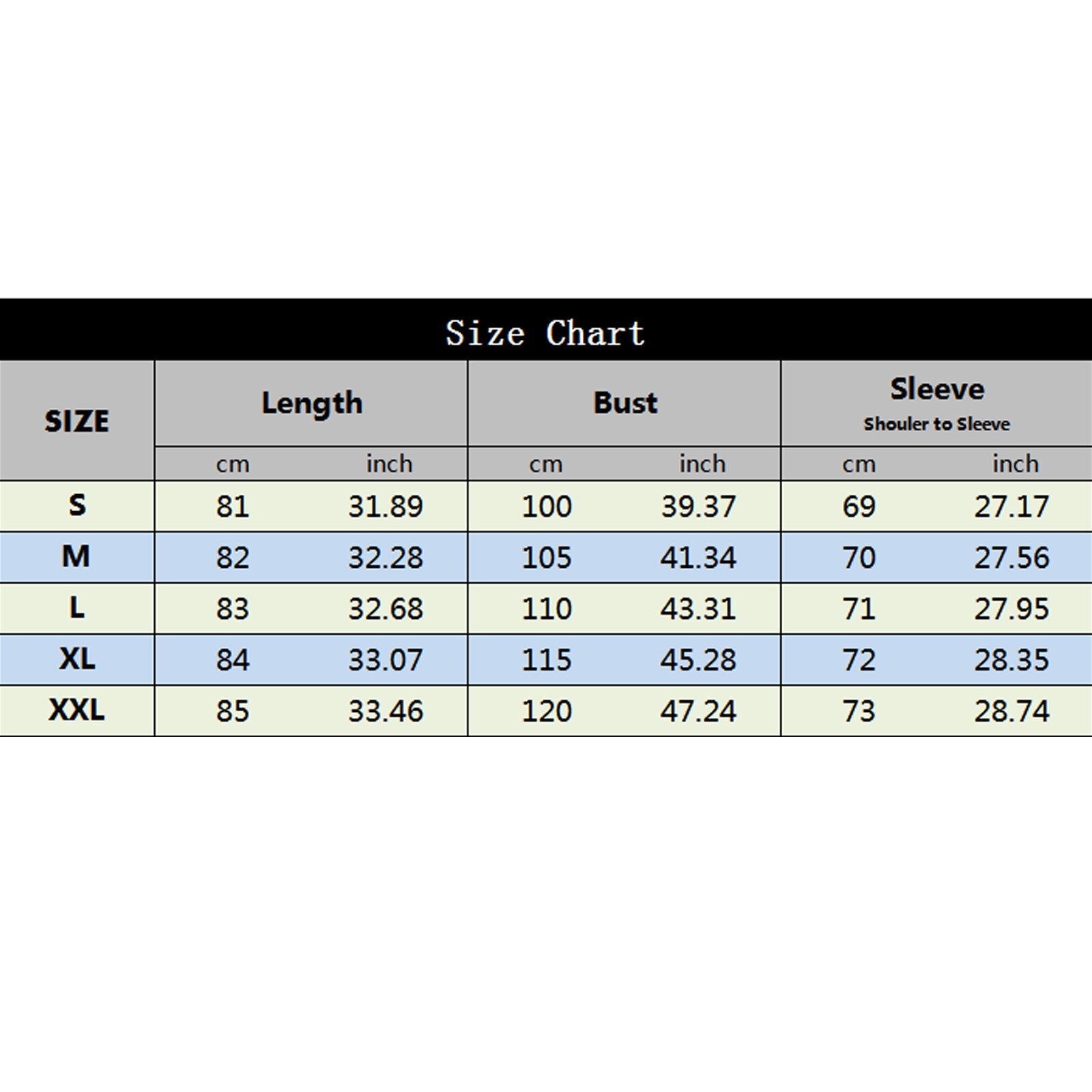 Tableau des tailles :
