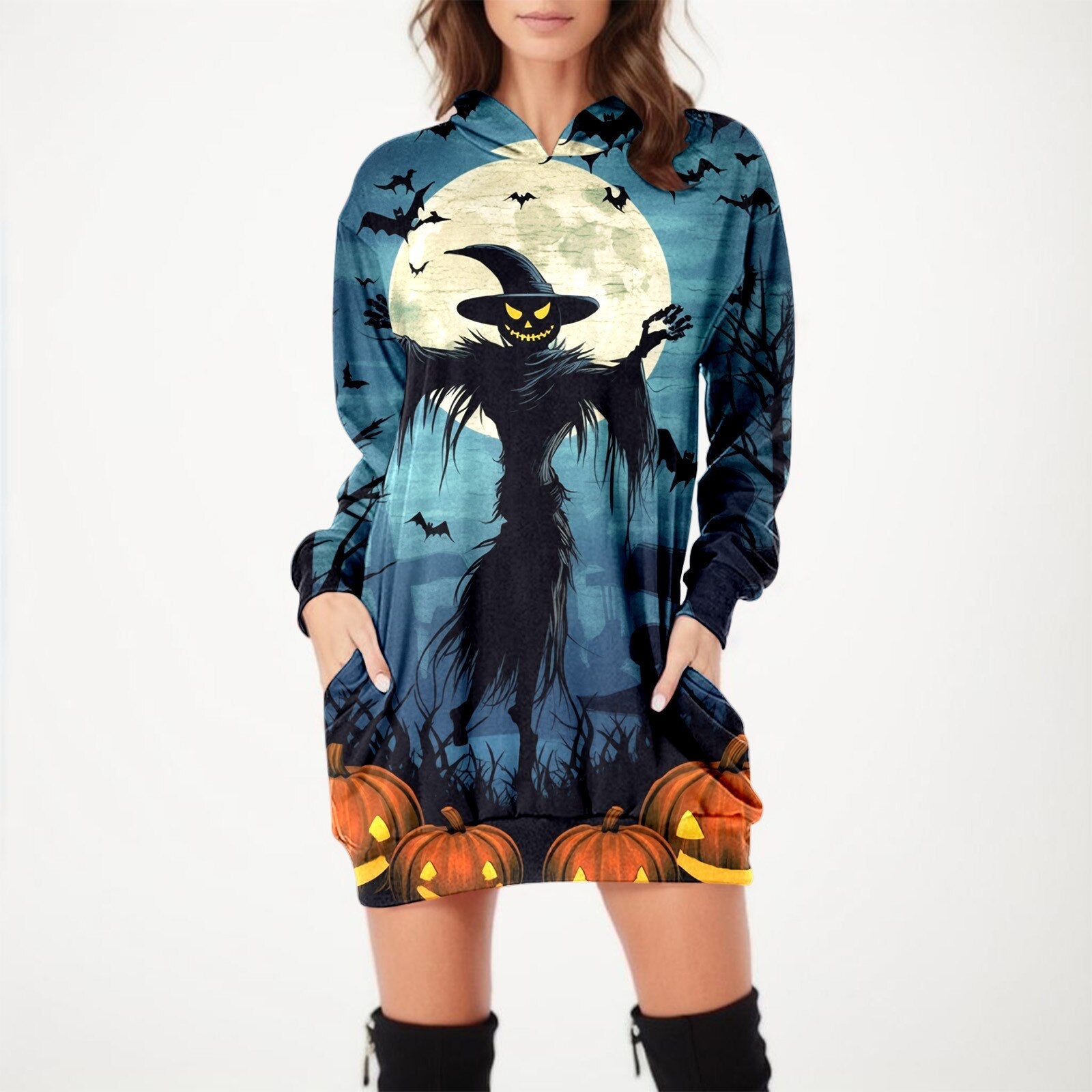 Dévoilez votre esprit d'Halloween kawaii avec notre robe à capuche imprimée Halloween - le mélange parfait de confort douillet et de style effrayant et mignon pour la saison !