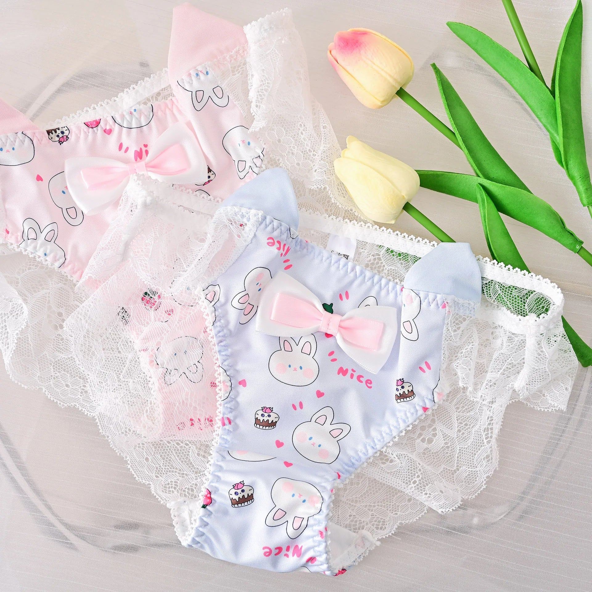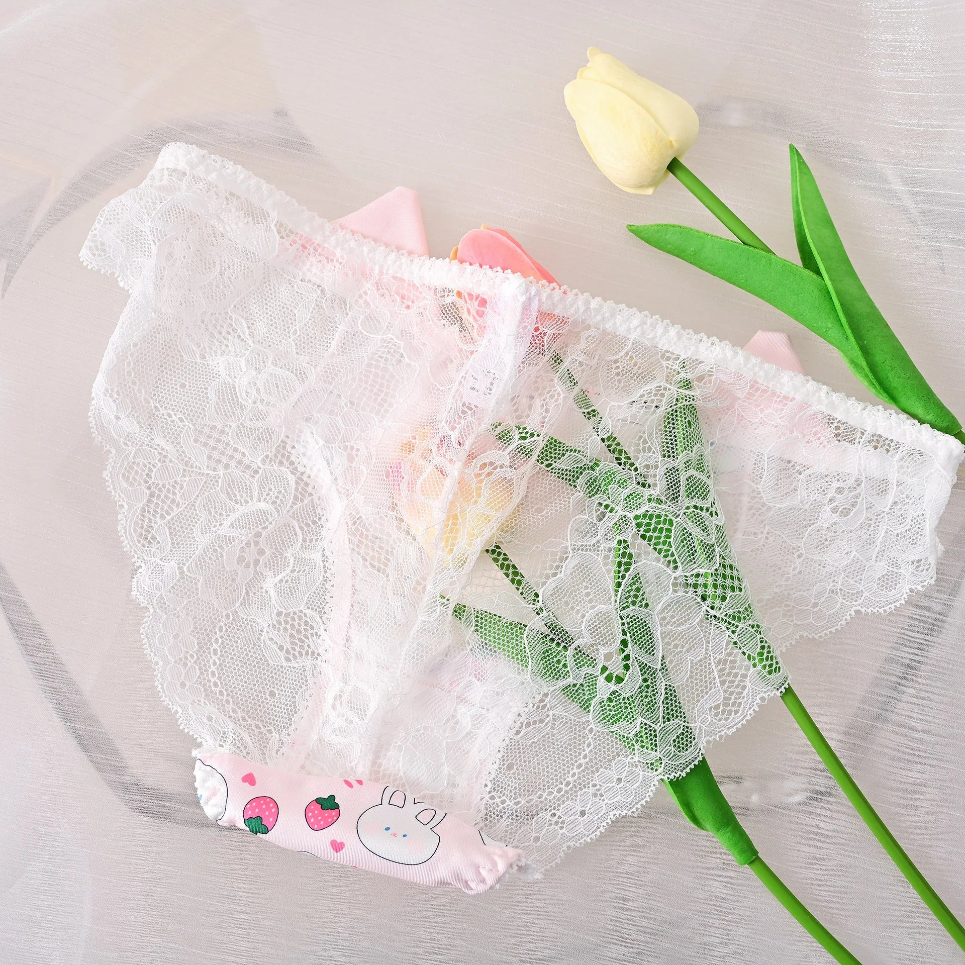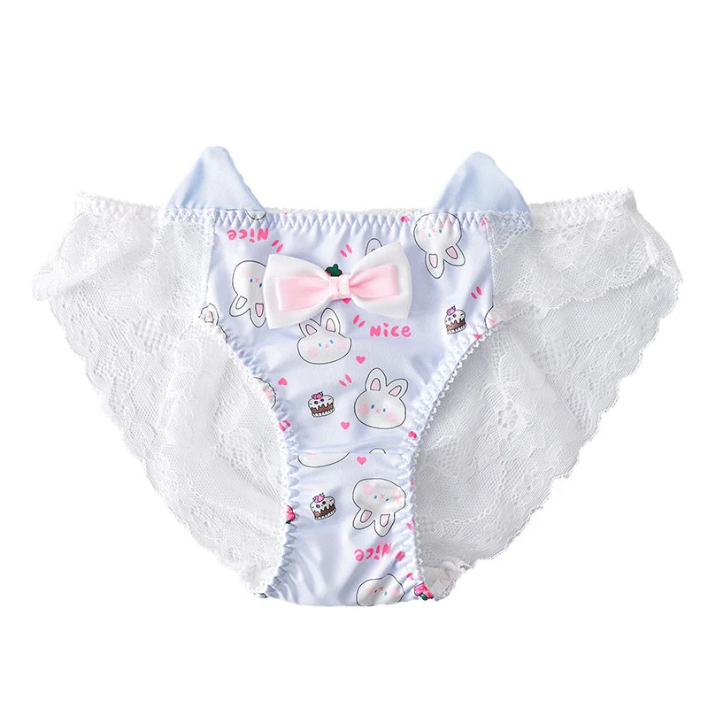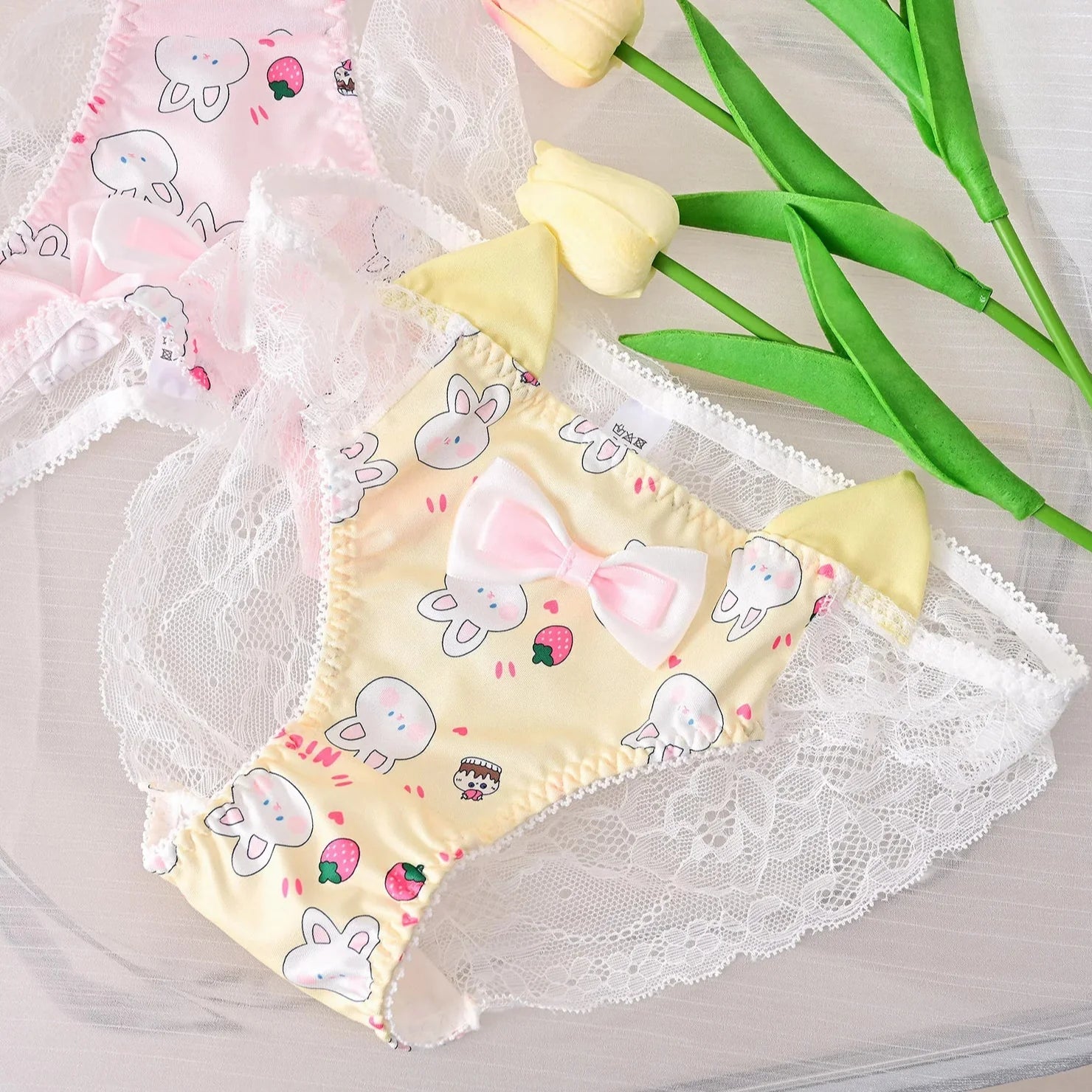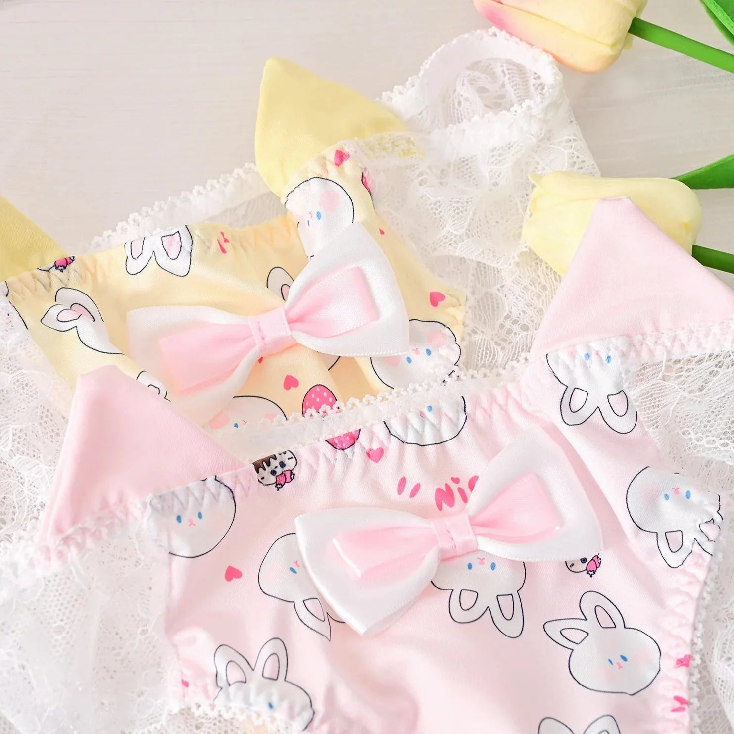Ajoutez une touche mignonne à votre garde-robe avec nos sous-vêtements à imprimé lapin kawaii. Choisissez entre rose, bleu ou jaune et sentez-vous adorable dans ces bas en dentelle. Parfaits pour une touche ludique et séduisante à votre quotidien.