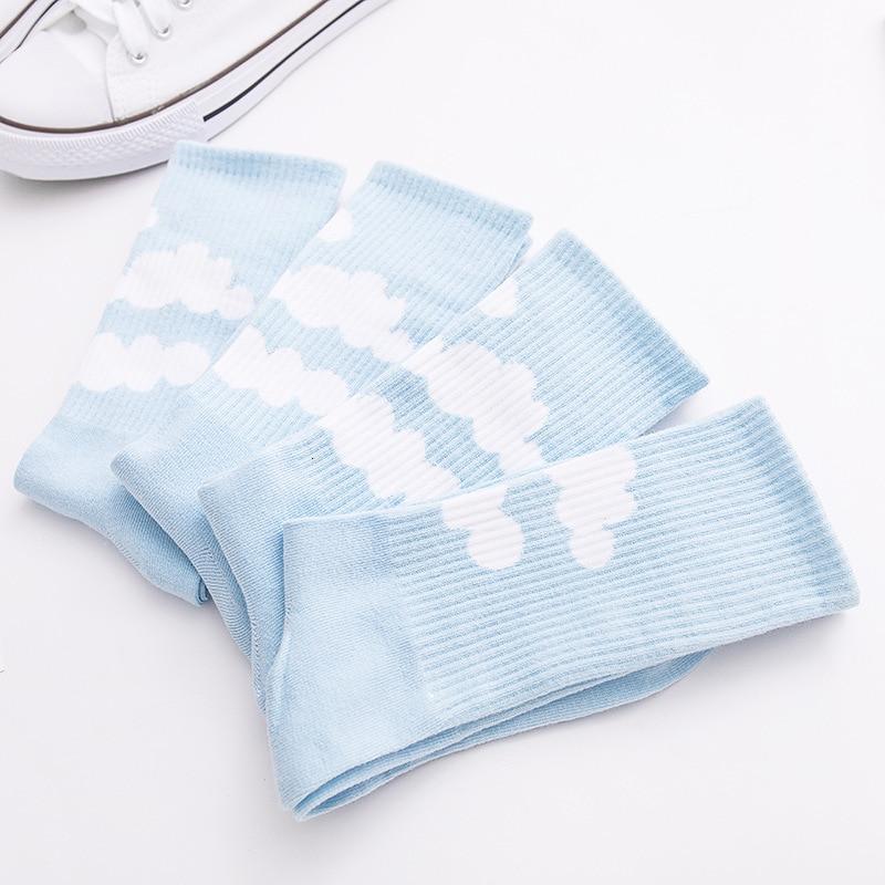 Restez au chaud et mignonne avec ces adorables chaussettes bleu clair ornées d'un charmant motif de nuages. Fabriquées dans une matière douce et respirante, elles sont parfaites à porter toute la journée. Elles sont rehaussées de nuages blancs moelleux qui ajoutent une touche de fantaisie à votre look quotidien. Leur couleur bleu clair est polyvalente et s'accorde avec de nombreuses tenues. Ces chaussettes sont également idéales à offrir à un ami ou un proche qui aime les accessoires mignons et amusants. Enfilez ces adorables chaussettes et ajoutez une touche de fantaisie à votre look !