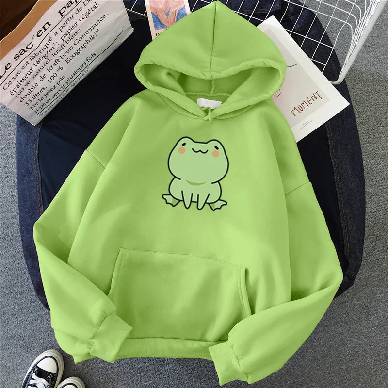 Préparez-vous à plonger dans la mode avec notre sweat à capuche Kawaii Frog ! Disponible en plusieurs couleurs, ce sweat à capuche vous donnera un look et une sensation de « ruban » à coup sûr ! Parfait pour les fans de mode kawaii, ce sweat à capuche est à la fois élégant et confortable. (N'essayez surtout pas d'attraper des mouches.)