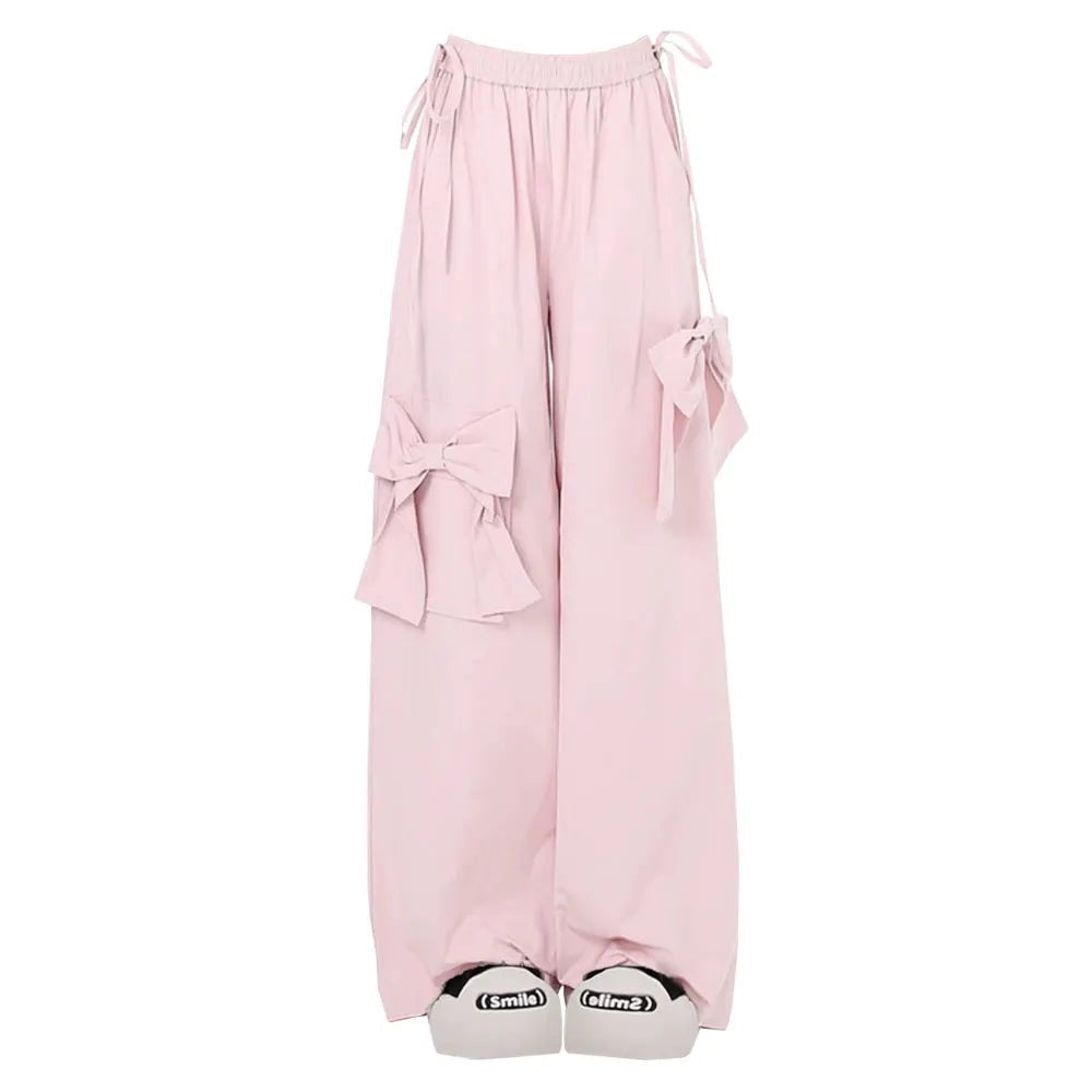 Ajoutez une touche mignonne à votre garde-robe avec notre pantalon cargo rose kawaii à nœuds. Ce pantalon cargo arbore un adorable nœud sur chaque jambe, apportant une touche unique à ce style classique. Parfait pour les fans de kawaii.