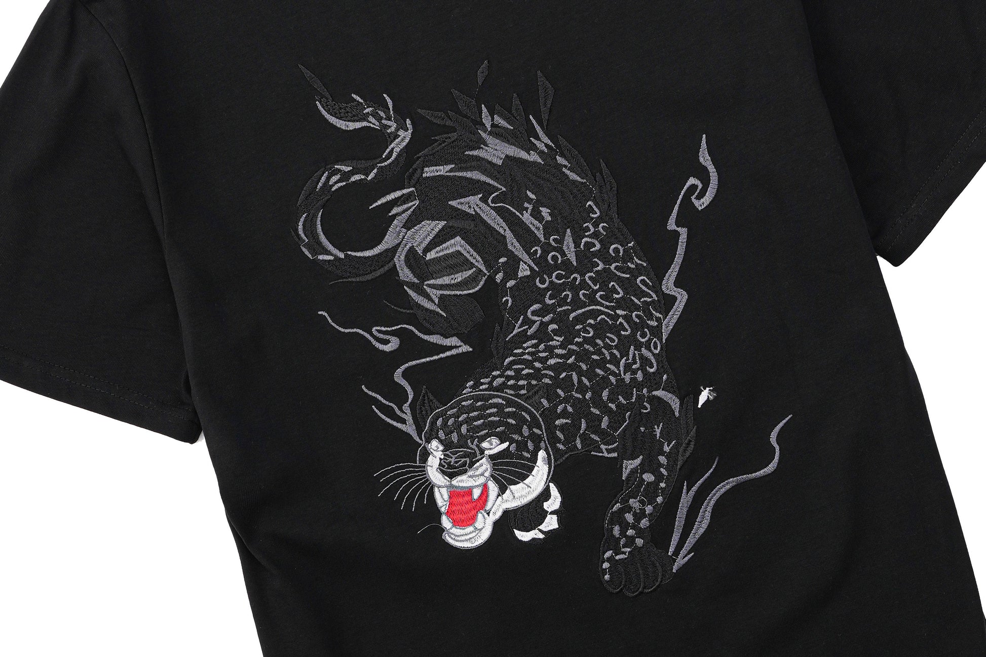 - Motif de panthère noire brodé au dos avec le motif de nuages émergents sur le devant symbolisant la nuit qui est là pour que les panthères puissent errer librement