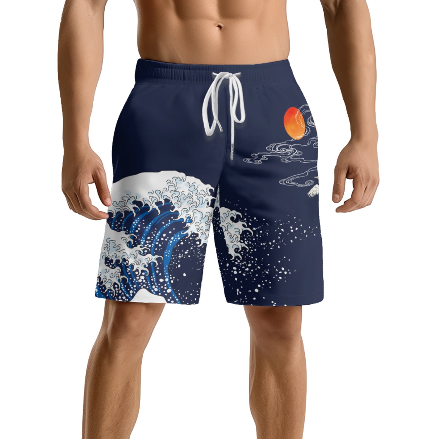 - Le design présente de grandes vagues ainsi qu'un soleil rouge levant