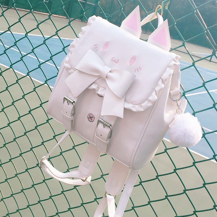 Accessoire idéal pour les amoureux des chats, ce sac à dos kawaii Neko est à la fois mignon et fonctionnel. Fabriqué en similicuir, il représente un chat blanc avec d'adorables oreilles. Son compartiment principal spacieux offre suffisamment d'espace pour vos livres, vos en-cas et autres essentiels. Ses bretelles réglables assurent un confort optimal et sa construction robuste vous accompagnera dans de nombreuses aventures. Que vous alliez à l'école, au travail ou en excursion, ce sac à dos Neko fera tourner les têtes et fera sensation.