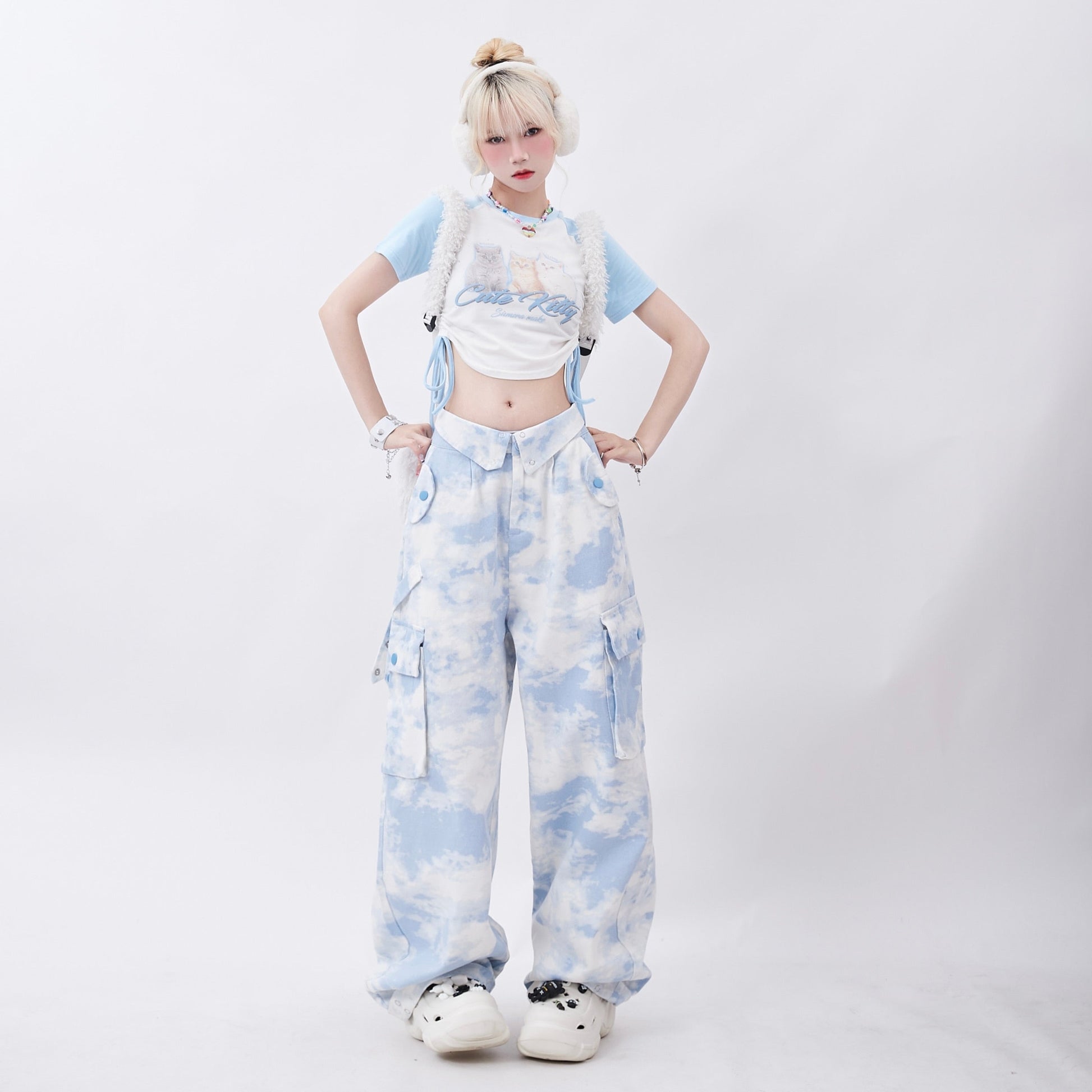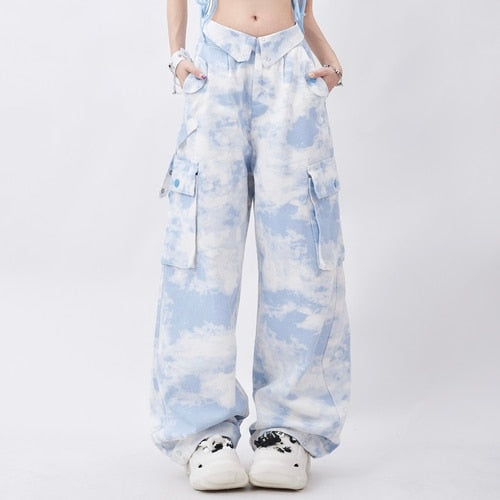 Motif camouflage pastel : ce pantalon kawaii présente un motif camouflage pastel unique en rose ou en bleu, ajoutant une touche ludique et kawaii au style cargo classique.