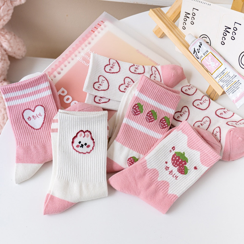 Ajoutez une touche mignonne et kawaii à votre tenue avec ces adorables chaussettes roses et blanches ! Disponibles en trois motifs amusants – cœurs, lapins et fraises – ces chaussettes sont parfaites en toute occasion. Fabriquées avec des matériaux de haute qualité, elles sont douces, confortables et résistantes. Leur tissu respirant garde vos pieds au frais et au sec toute la journée. Que vous soyez à la maison ou en déplacement, ces chaussettes ajouteront une touche de couleur et de personnalité à votre look. Elles constituent également un cadeau idéal pour les amateurs d'accessoires de mode mignons et originaux. Ne passez pas à côté de ces chaussettes incontournables !