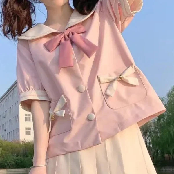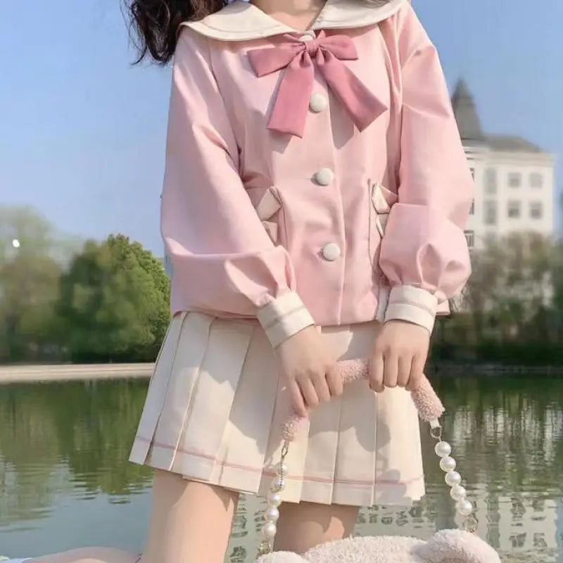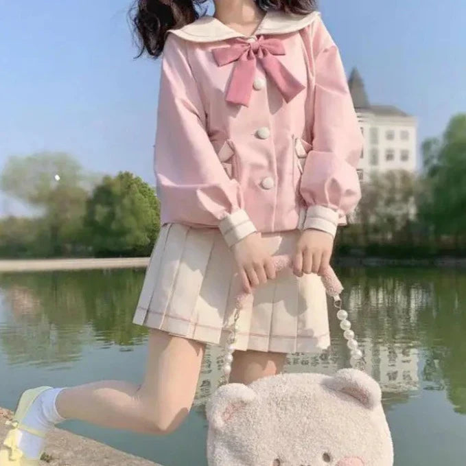 Préparez-vous à adopter le style avec la tenue d'uniforme marin rose. Cette tenue kawaii est parfaite pour celles qui souhaitent ajouter une touche ludique et amusante à leur garde-robe. Que vous soyez fan de mode mignonne et originale ou que vous cherchiez simplement à vous démarquer, cette tenue fera sensation.