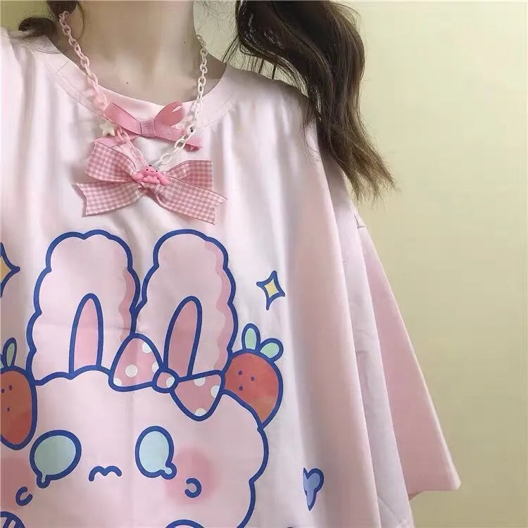 Transformez votre garde-robe avec le charme délicieux de notre t-shirt Harajuku Pink Strawberry Bunny – où la mode ludique rencontre le confort à chaque tenue.