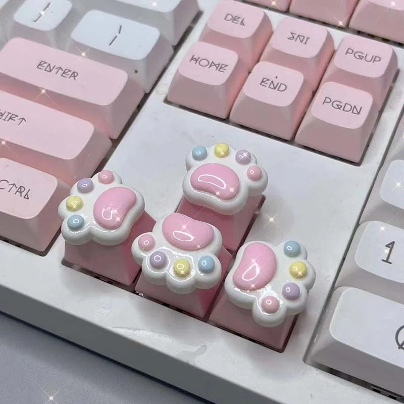 Offrez à votre clavier une touche de modernité avec nos touches Rainbow Beans Cat Paw ! Chaque touche arbore une patte de chat blanche et des pois pastel aux couleurs arc-en-ciel. Que vous en choisissiez une seule pour une touche expressive ou un jeu complet de 4 pour un maximum de douceur , ces touches apportent un charme ludique et un confort doux au toucher à chaque clic. 💖⌨️