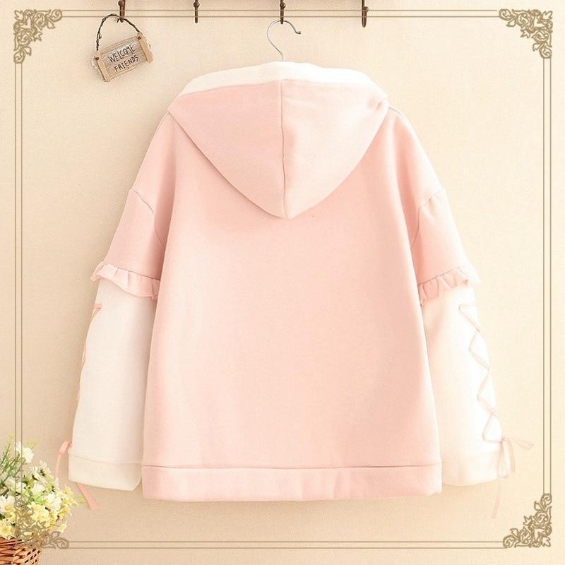 Sweat à capuche fraise avec manches à lacets
