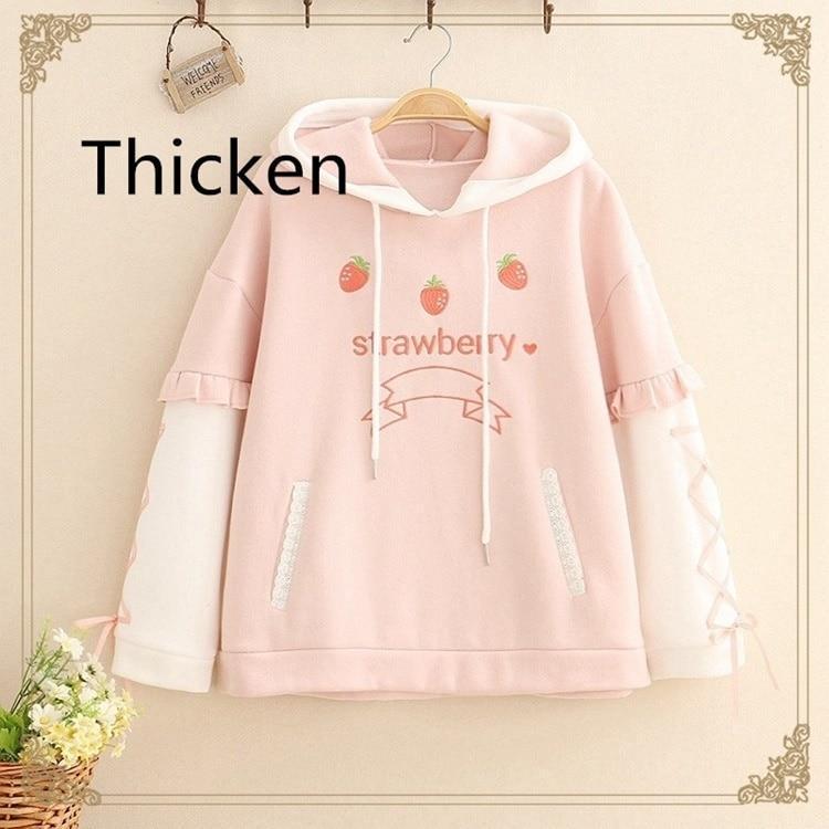 Si vous vous sentez un peu kawaii, ce joli sweat à capuche fraise avec manches à lacets est fait pour vous ! Disponible en version hiver et en matière estivale, ce sweat à capuche fraise kawaii taille unique sera un excellent ajout à votre garde-robe ! Procurez-vous votre sweat à capuche fraise kawaii dès aujourd'hui !