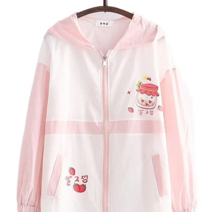 Cet été, restez douce et élégante avec notre veste d'été fine Strawberry Jam. Avec son design kawaii et ses couleurs pastel, vous ferez des envieux. Parfaite pour une couche légère lors des journées chaudes. Ne passez pas à côté de cette pièce tendance et savoureuse !