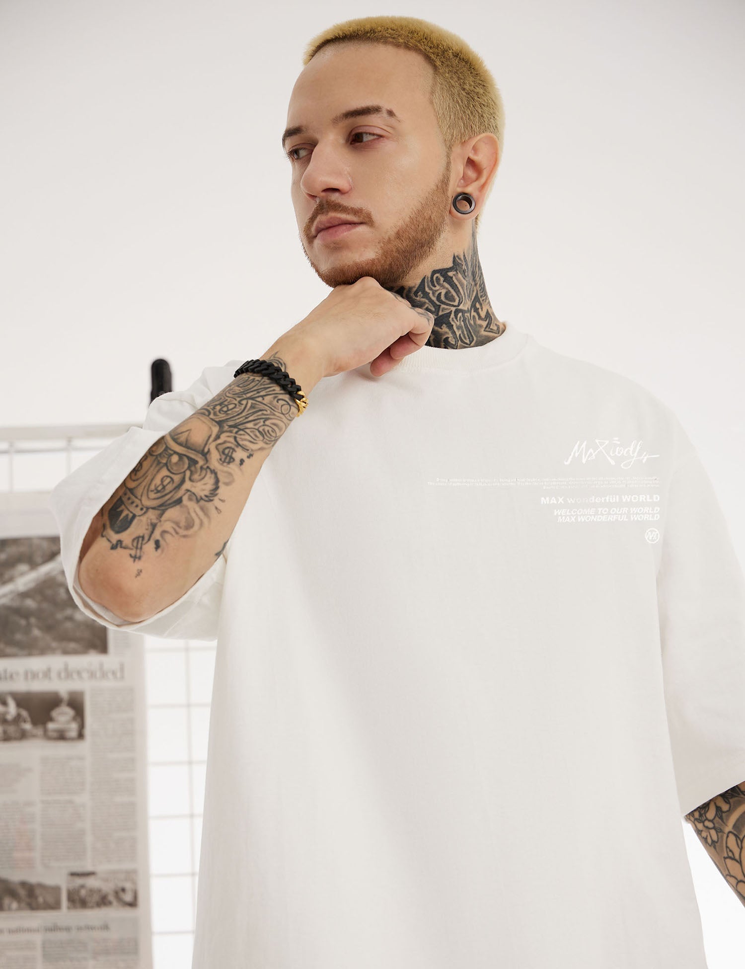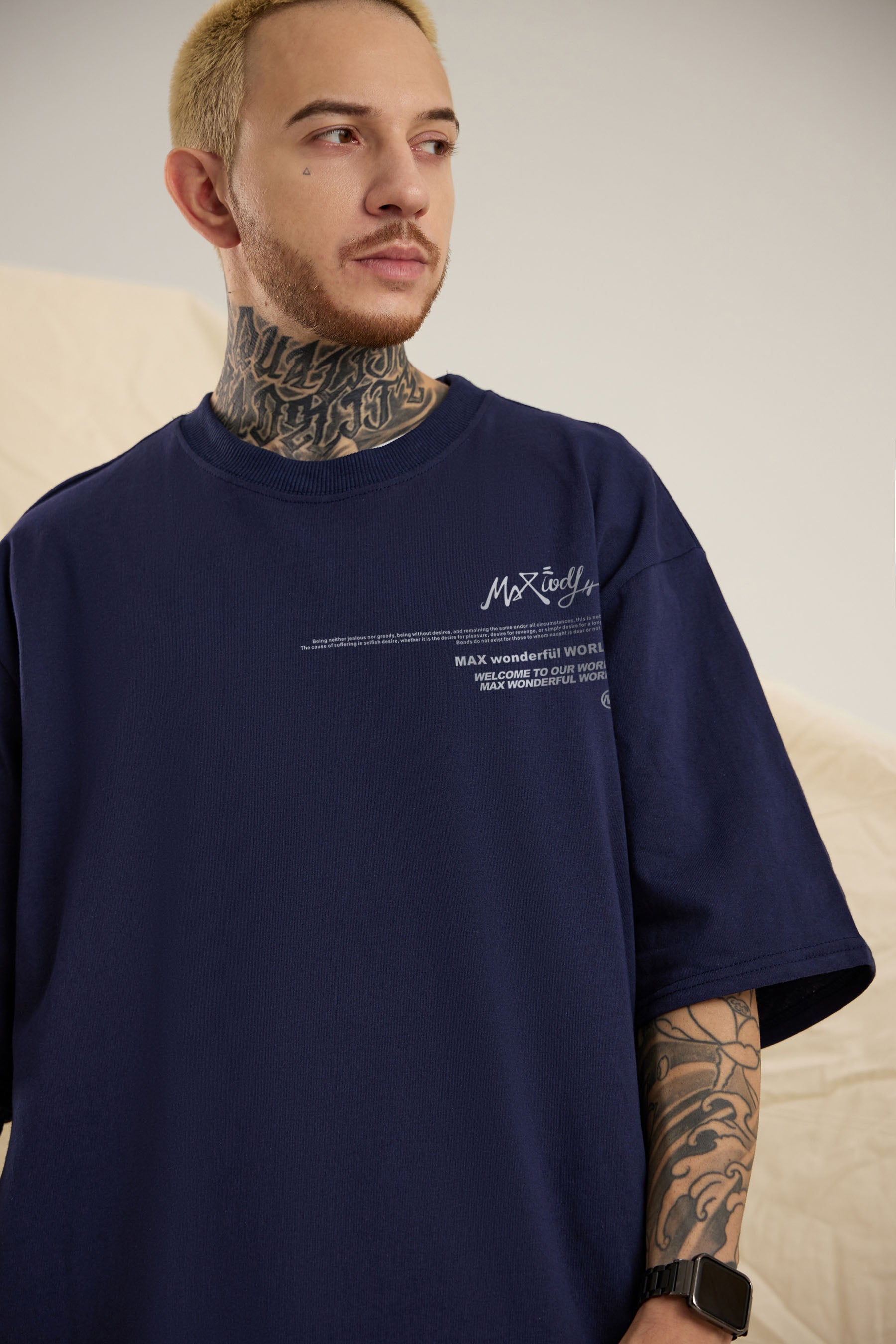 Tailles USA - Le mannequin masculin mesure : 5 pieds 11 pouces ou 180 cm et pèse 167 lb ou 75,7 kg et porte la taille L pour un look surdimensionné et M pour une coupe régulière