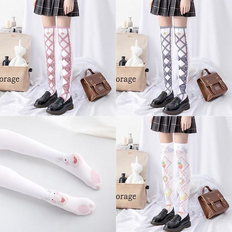 Ces bas cuissardes kawaii sont non seulement chics, mais affichent également une esthétique kawaii avec leurs ravissants motifs. Motifs ludiques et personnages attachants : nos bas cuissardes kawaii sont l'accessoire idéal pour exprimer votre style unique.