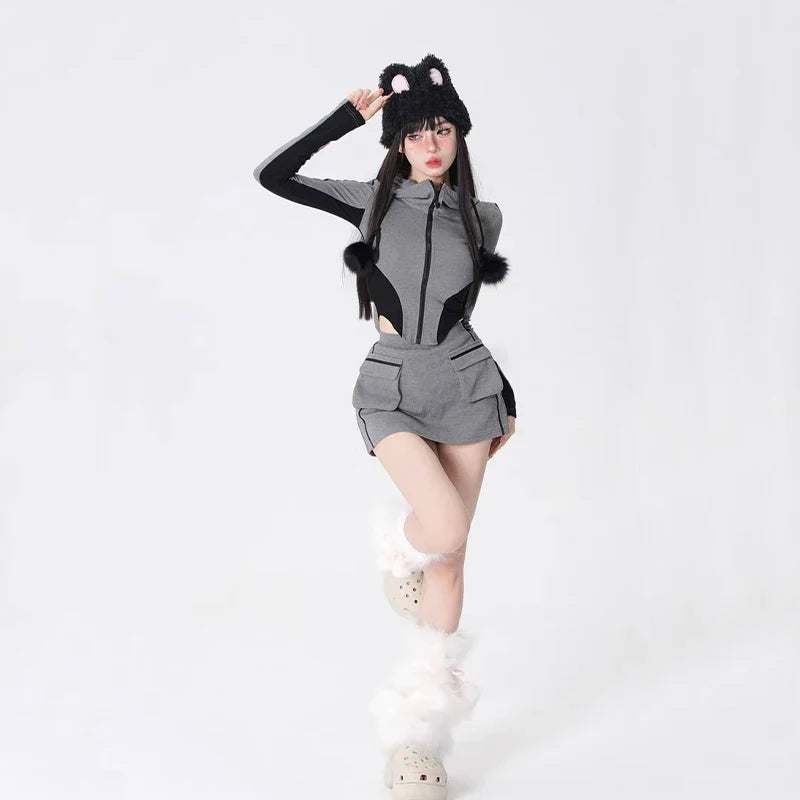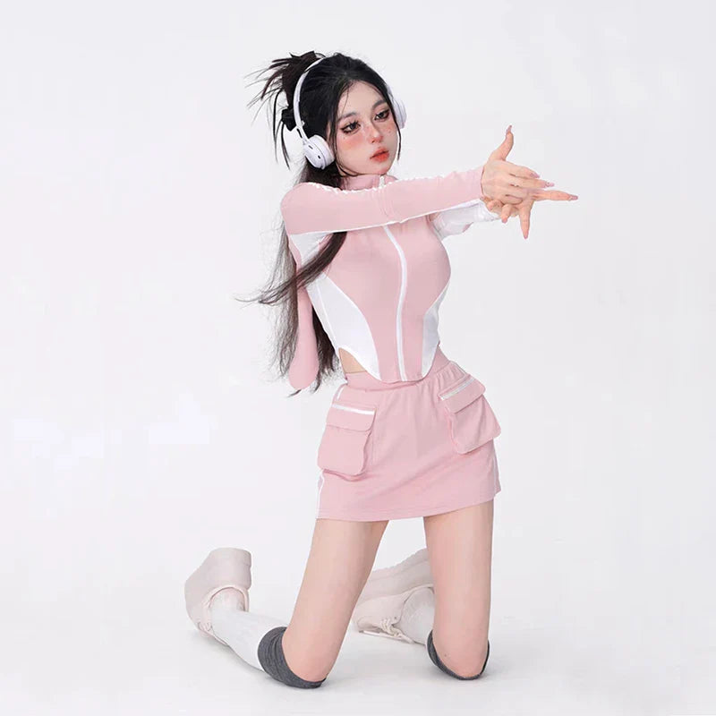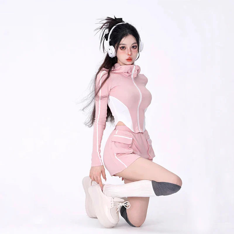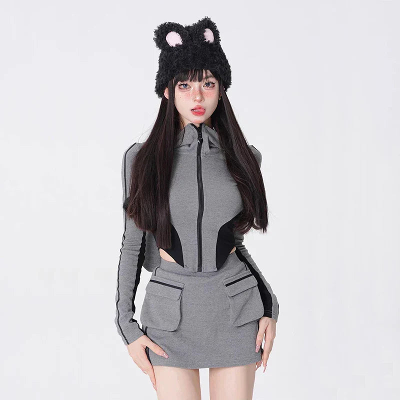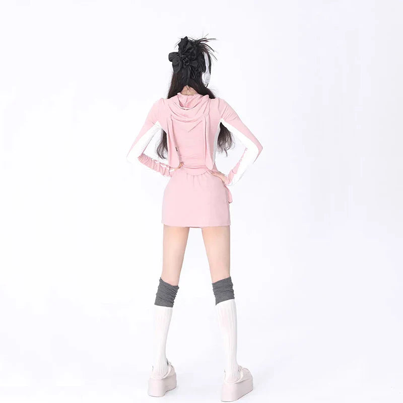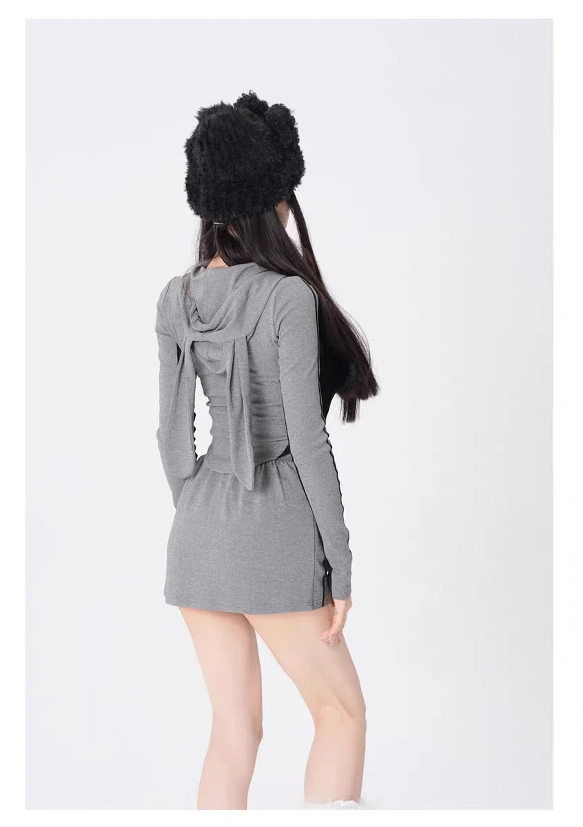 Adoptez le style kawaii avec notre ensemble deux pièces à capuche et oreilles de lapin. Cet ensemble ludique comprend un sweat à capuche douillet orné d'adorables oreilles de lapin, parfait pour ajouter une touche de fantaisie à n'importe quelle tenue. Que vous soyez à la maison ou en ville, cette tenue vous fera sourire.