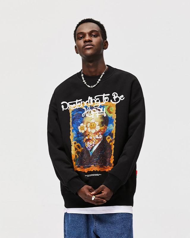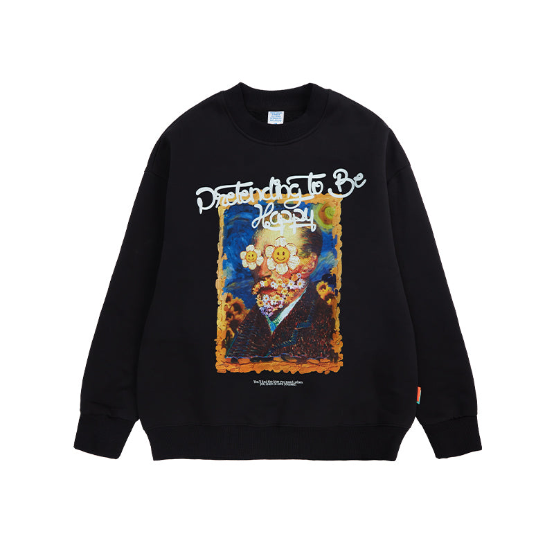 - Sérigraphie graphique 3D représentant Van Gogh avec des marguerites couvrant ses yeux