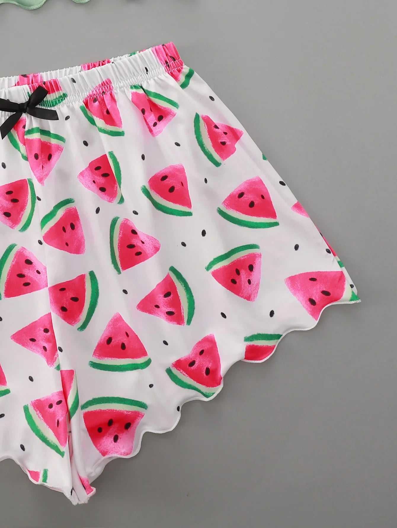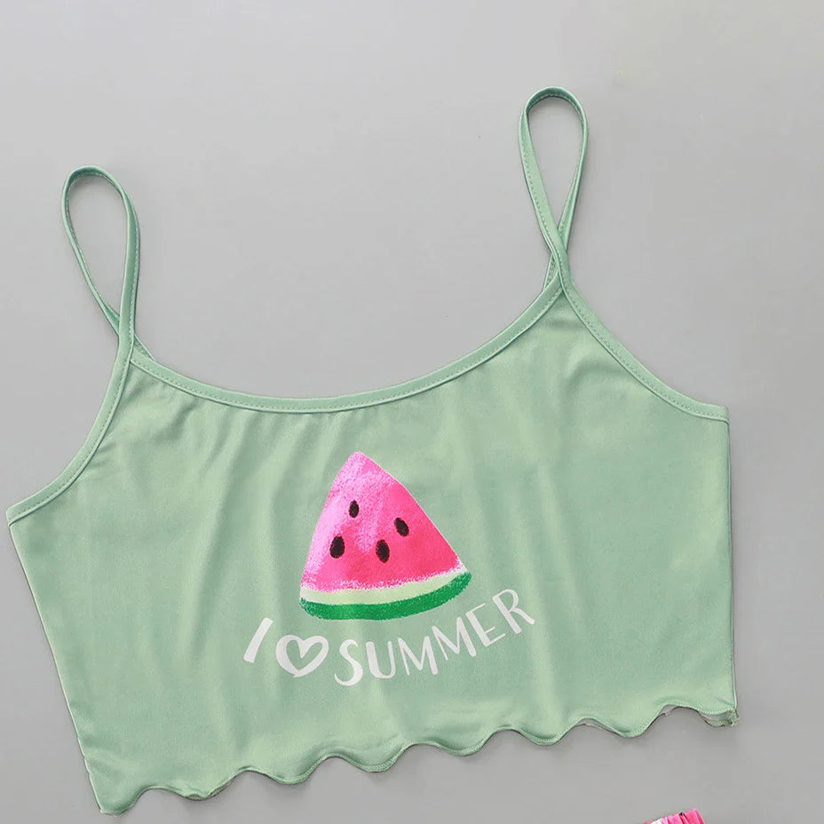 Rehaussez votre tenue de nuit avec ce pyjama court pastèque juteux ! Avec son imprimé pastèque amusant sur le short, ce pyjama kawaii est parfait pour une nuit réparatrice. (Jeu de mots !) Dormez à la mode et confortablement dans ce pyjama original.