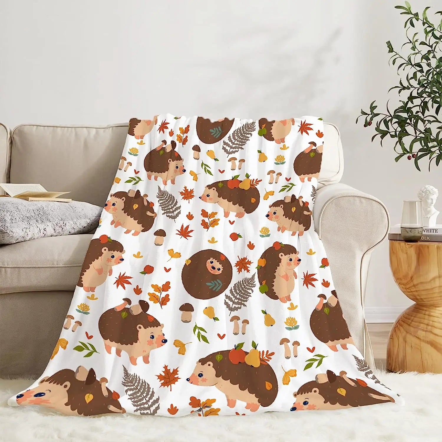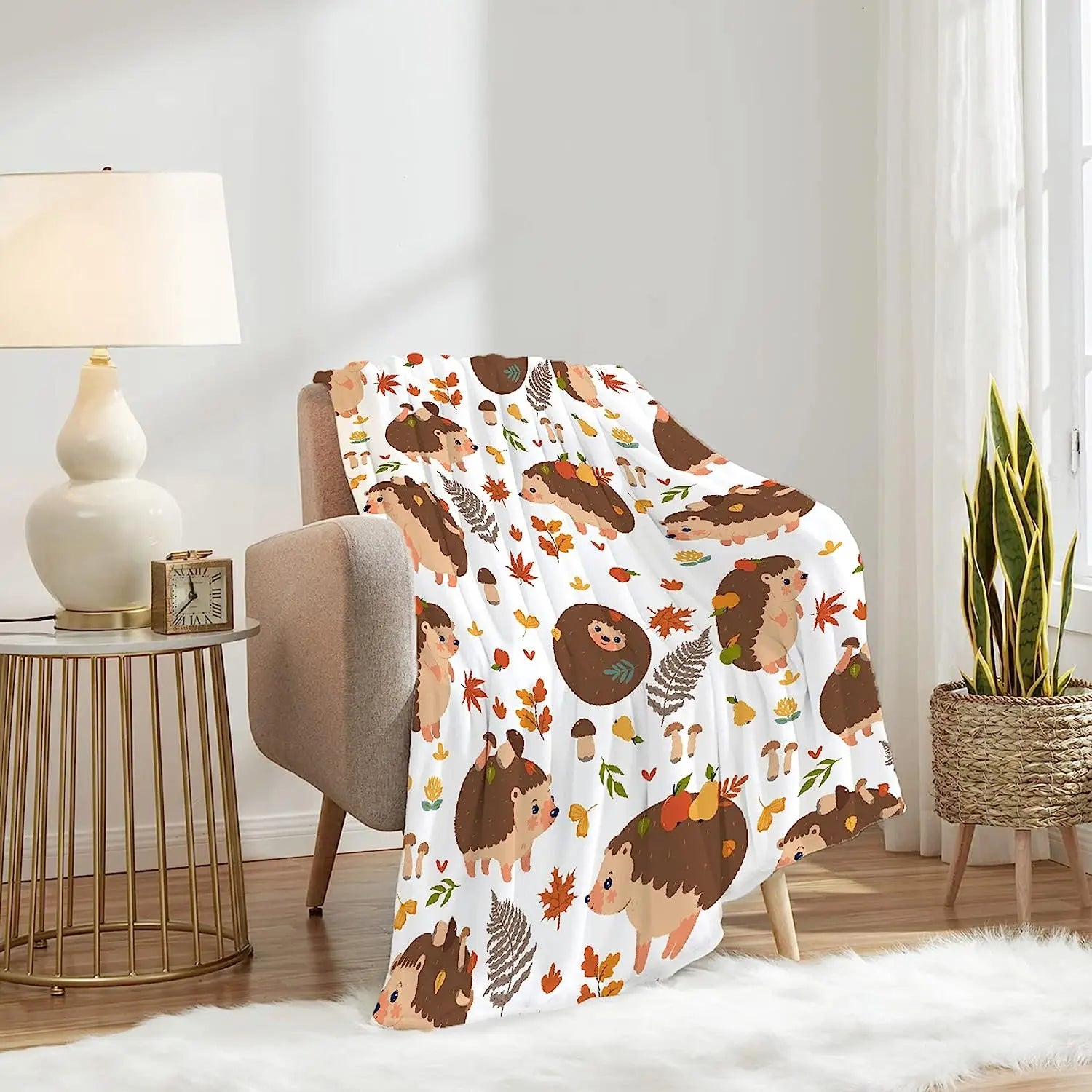 Stay cozy this autumn with our Autumn Leaves Hedgehog Blanket. Made with soft, kawaii material, it's perfect for snuggling up on chilly days. With an adorable hedgehog design surrounded by falling leaves, it's a fun addition to any room. Embrace the change of the season with this playful and quirky blanket.
