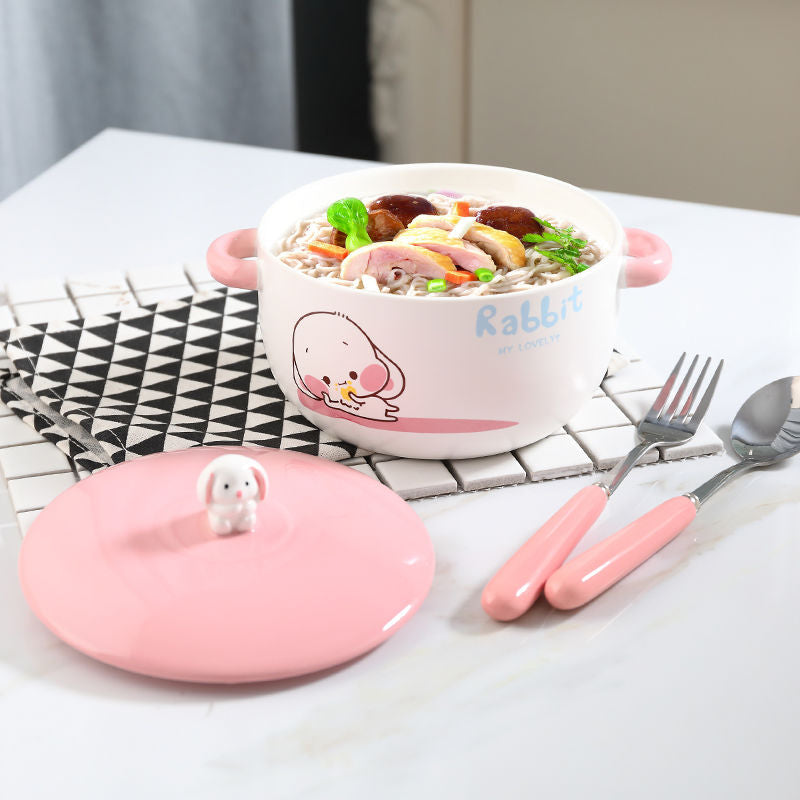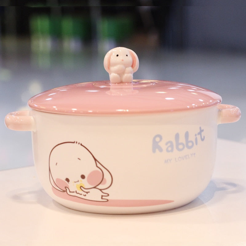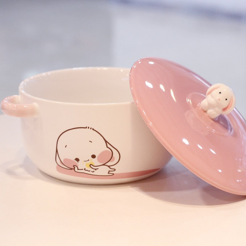 This Bunny Ceramic Ramen Bowl With Lid is perfect for any bunny lover. The bowl features a cute bunny design on the outside and is perfect for serving up delicious ramen. The lid also features a cute bunny that helps keep your food warm. Made of high-quality ceramic, this bowl is durable and easy to clean. Use it for ramen, noodle soup, or any other favorite dish. It's a great addition to any kitchen and makes a cute gift for any bunny lover.