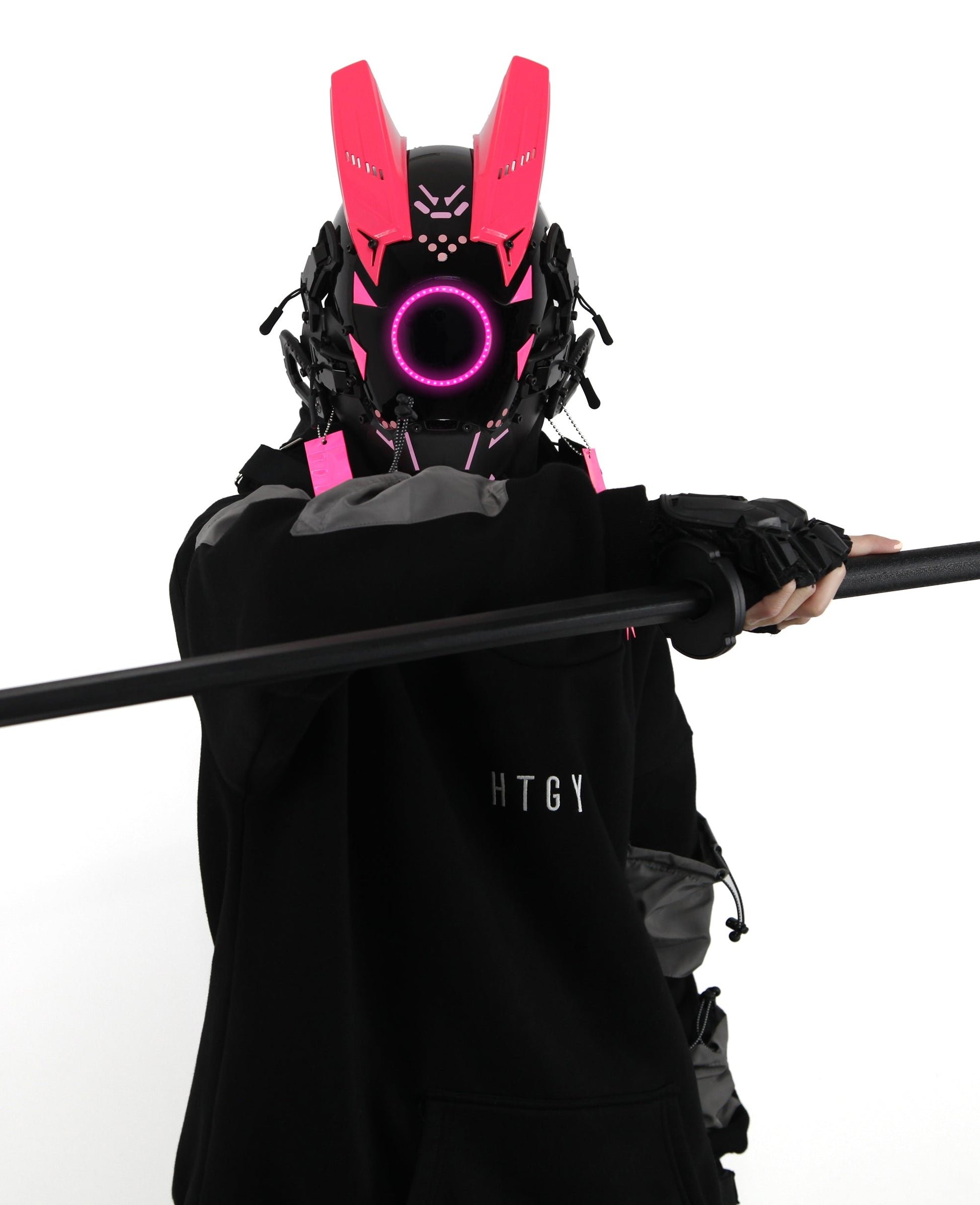 - Led Lights - The mask has an easy on and off switch that allows for the mask to light up with a cool pink light in a round circle