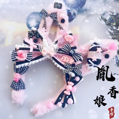 This kawaii headband features fluffy bunny ears adorned with colorful and sparkly decoden decorations creating a delightful and eye-catching aesthetic. The flexible headband ensures a comfortable and secure fit, while the lightweight design allows for effortless wear throughout the day.