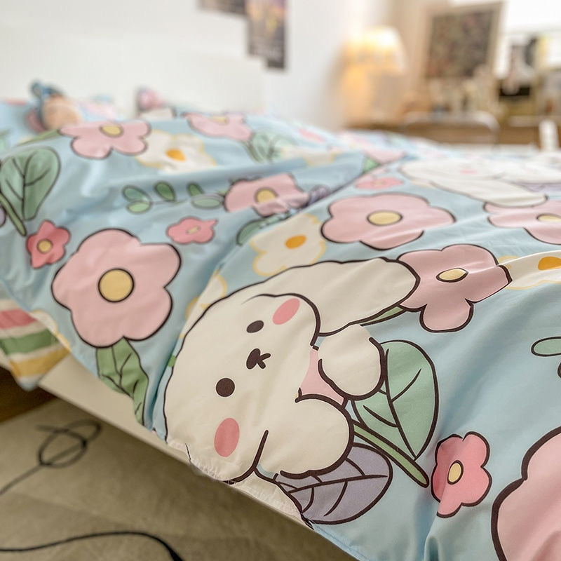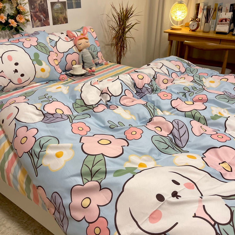 Introducing our Flower Bunny Duvet Cover, the perfect addition to your kawaii bedding collection. Transform your bedroom into a whimsical and charming oasis with this delightful duvet cover.