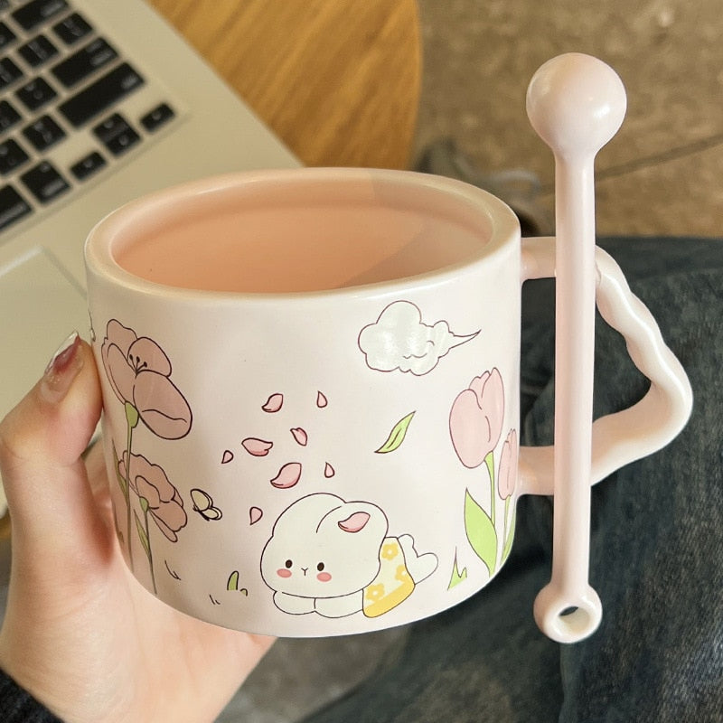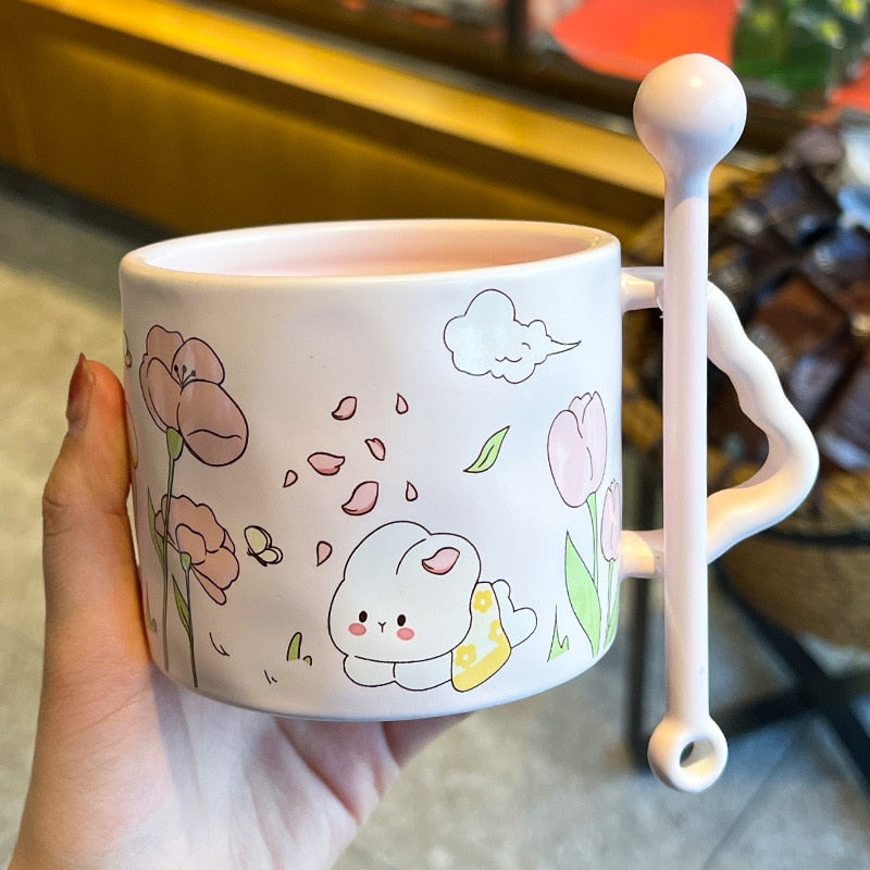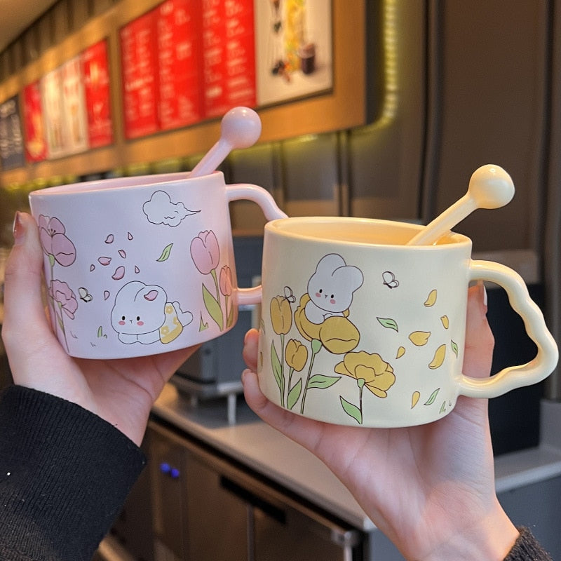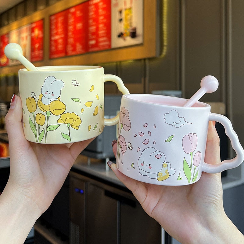 Introducing our Flower Bunny Mugs, the perfect addition to your kawaii kitchenware collection.
