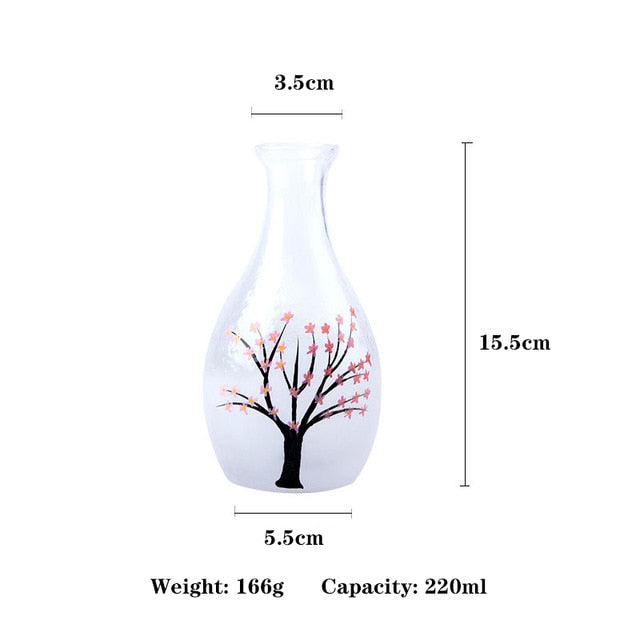 The Frosted Plum Blossom Sake Set is a beautifully crafted traditional Japanese sake set that will elevate any drinking experience. The set includes a sake bottle, sake warmer, and four small cups, all made of high-quality frosted glass. The delicate and intricate plum blossom design is sure to impress, with the soft pink color adding a touch of elegance. Whether it's for personal use or as a gift for a sake lover, this set is a must-have addition to any collection.