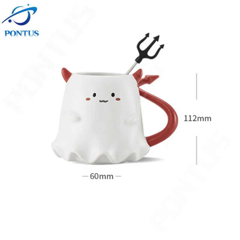 Halloween Devil Mug Cute Demon Elf Ghost Ceramic Cup with Spoon Home Office Coffee Cup Tea Mugs Coffee Cups Halloween Gift