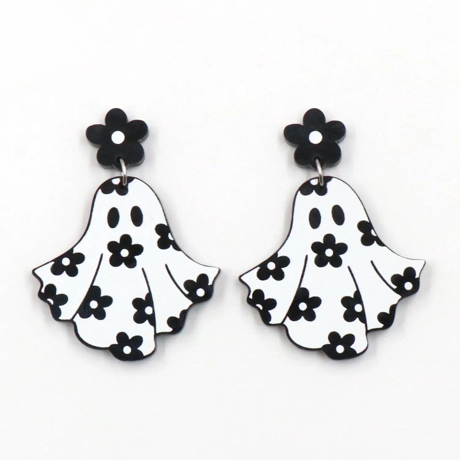 Introducing Our Cute Halloween Earrings: Ghostly Elegance with a Floral Twist!