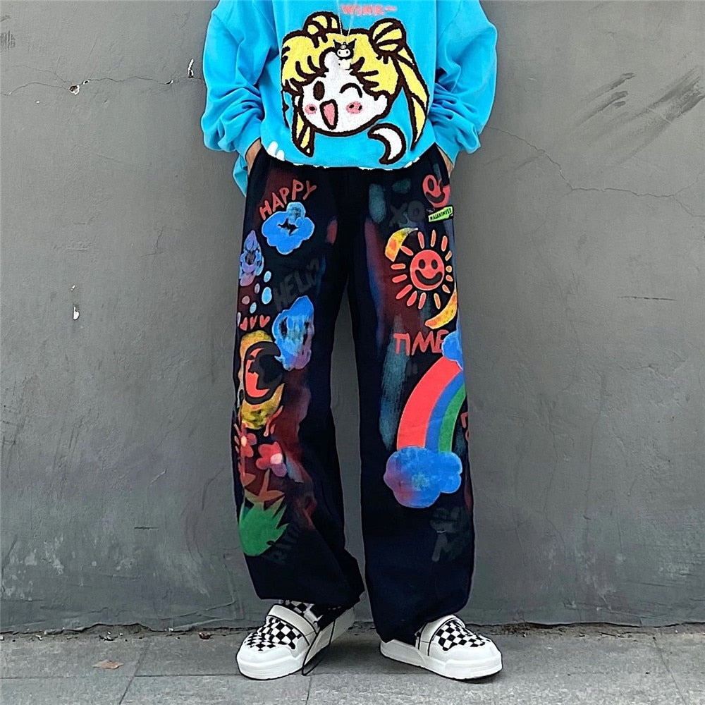 Step into a world of artistic flair with our Harajuku Graffiti Pants. These kawaii pants are adorned with a captivating graffiti print that exudes a playful and urban charm. Whether you're strolling through the streets or expressing your unique style, these kawaii pants are a vibrant addition to your wardrobe. With their eye-catching design and kawaii aesthetics, the Harajuku Graffiti Pants are perfect for those who embrace creativity and individuality in their fashion choices.