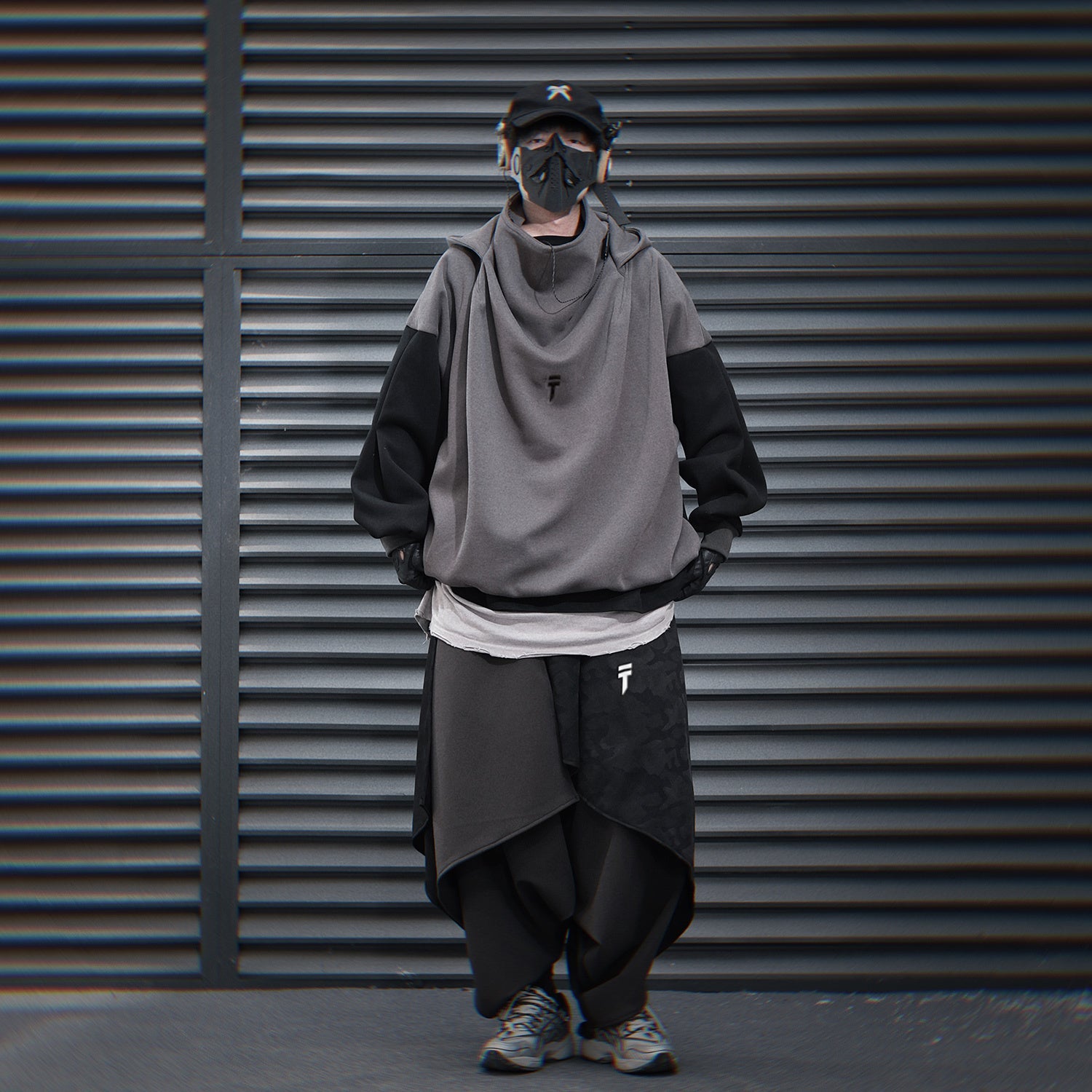 - Patchwork stitched arm sleeves design for a black and grey color combination
