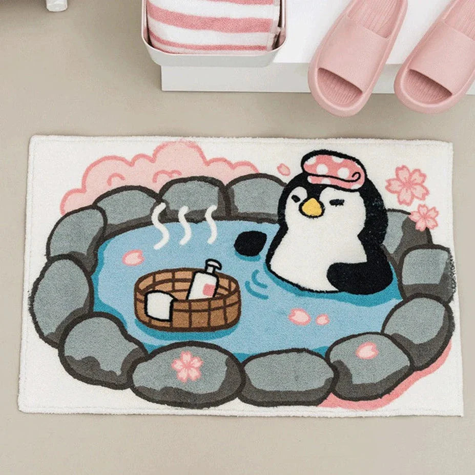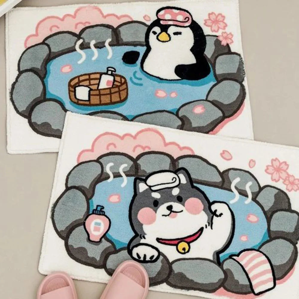 Add a touch of whimsy to your home with our Hot Spring Animals Floor Mats. Featuring adorable kawaii animals enjoying a relaxing soak in a hot spring, these mats will bring a smile to your face every time you step foot on them. Perfect for adding some playful charm to your decor!