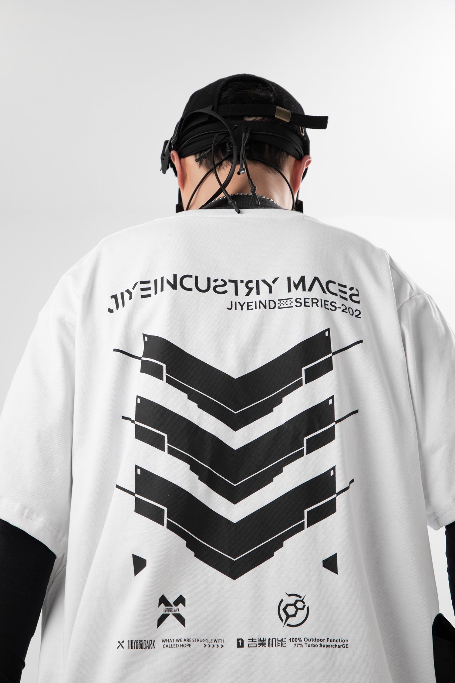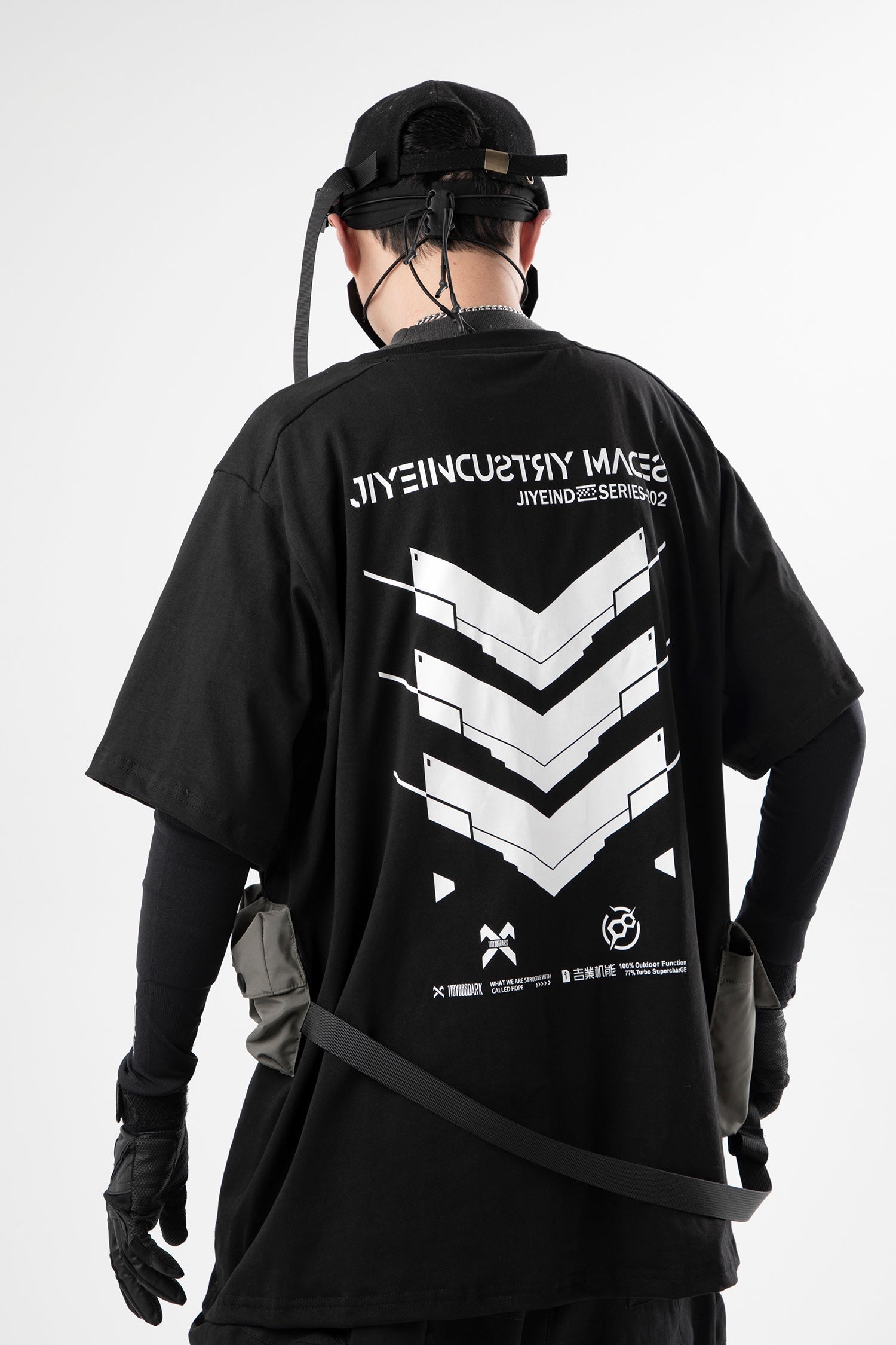 - Graphic cyber alien screen print design on the back with a precision shot logo design on the front