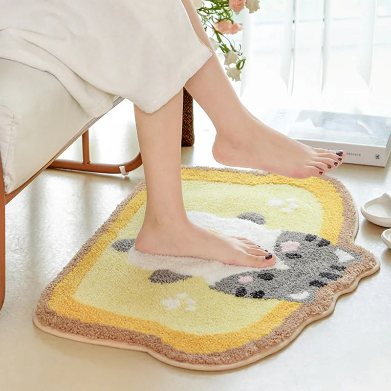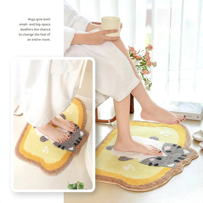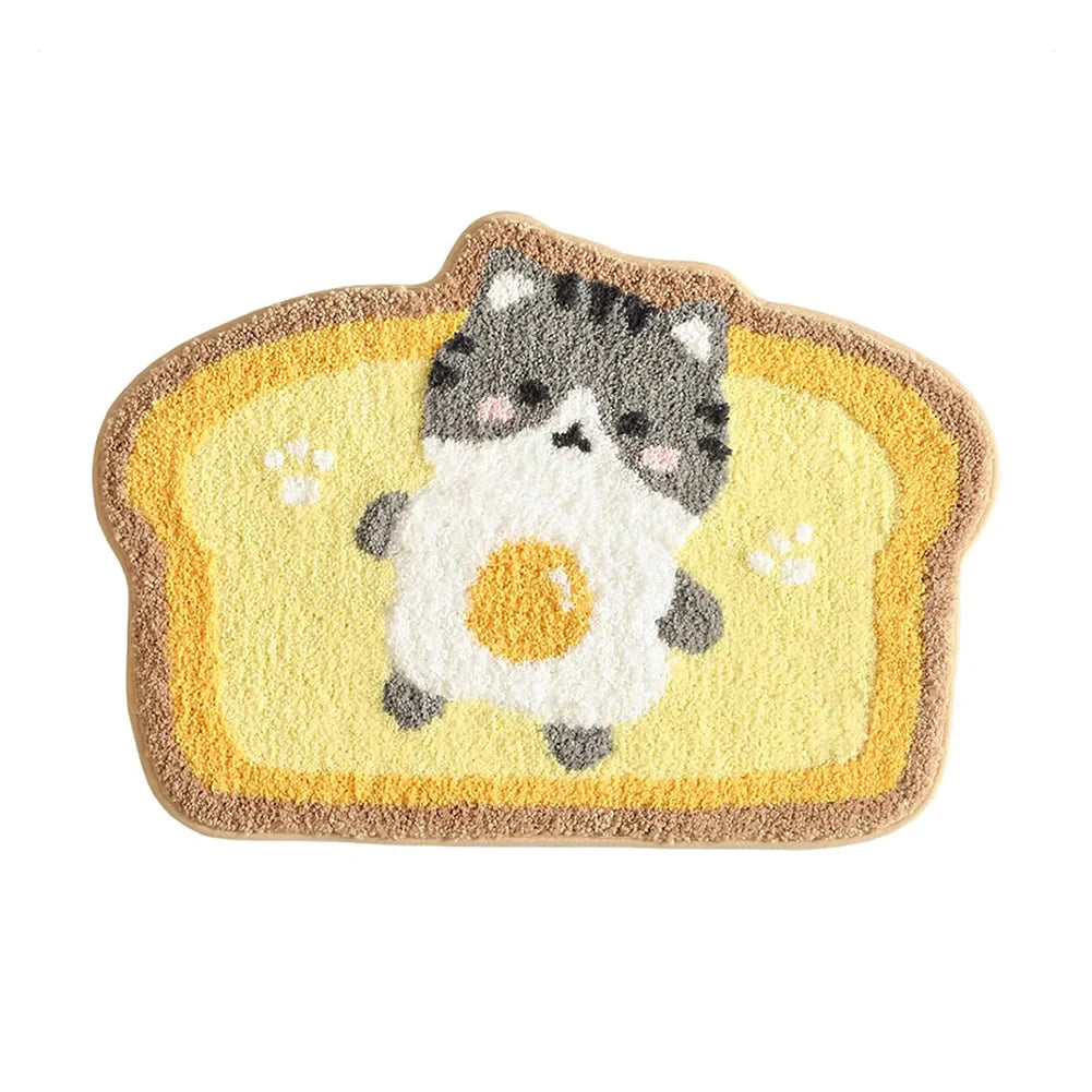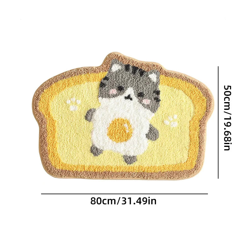 Spruce up your bathroom with the Kitty Toast Bath Mat Rug! This kawaii bathroom decor adds a touch of cuteness to your daily routine. Step out of the shower onto a mat that's as quirky and fun as you are.